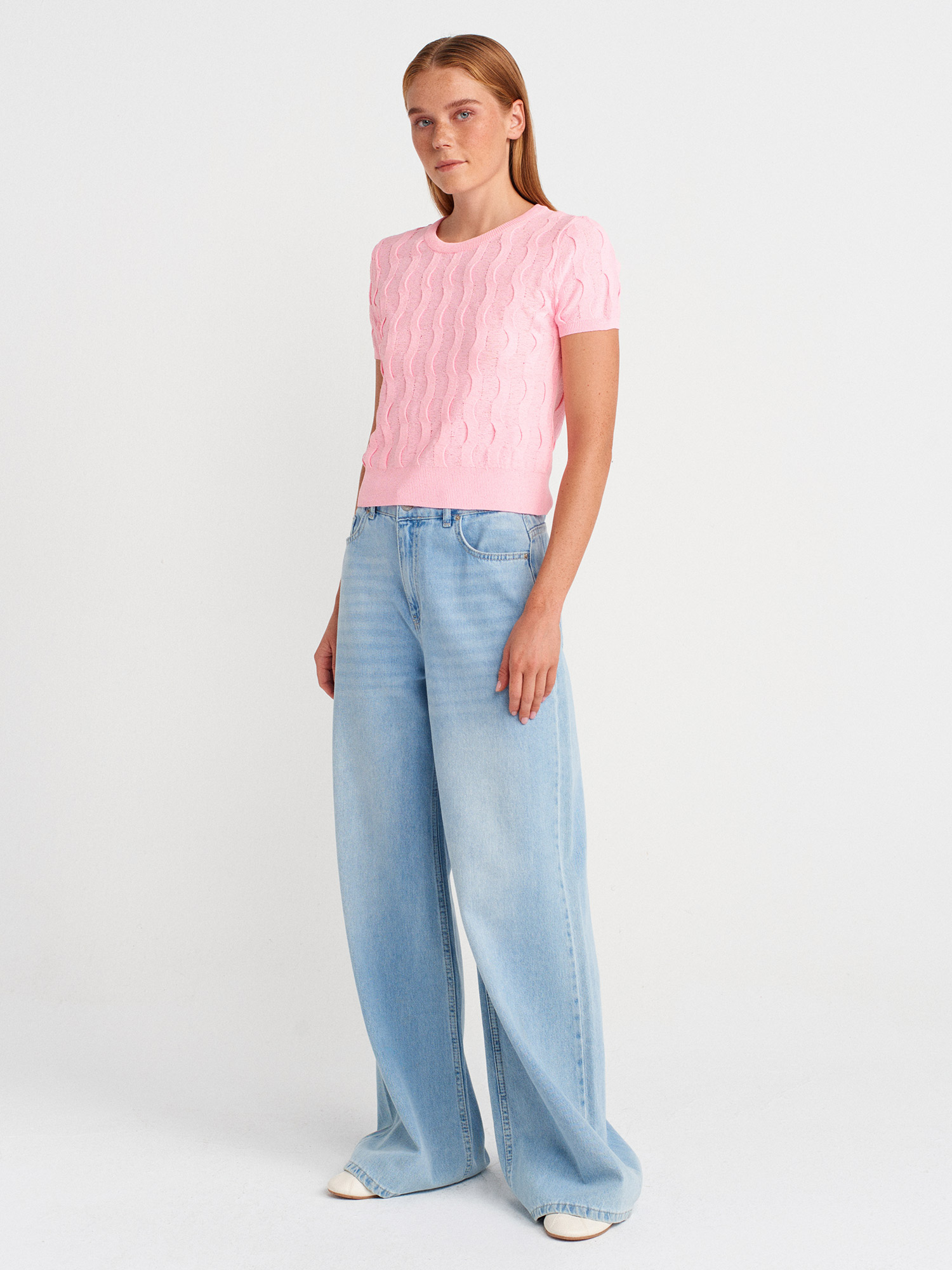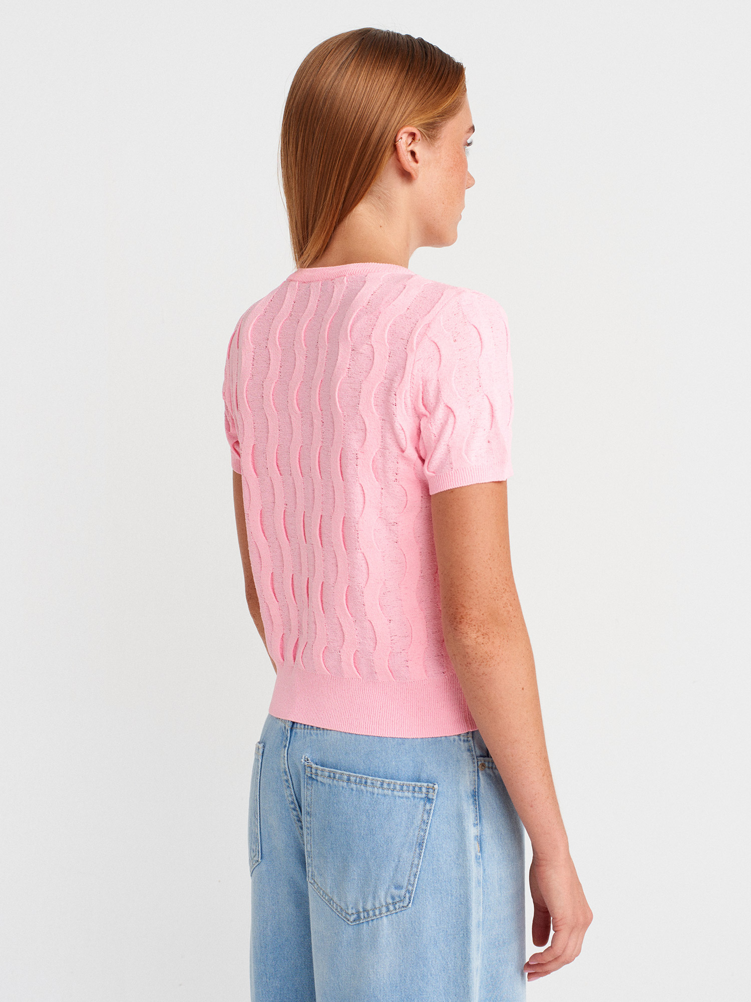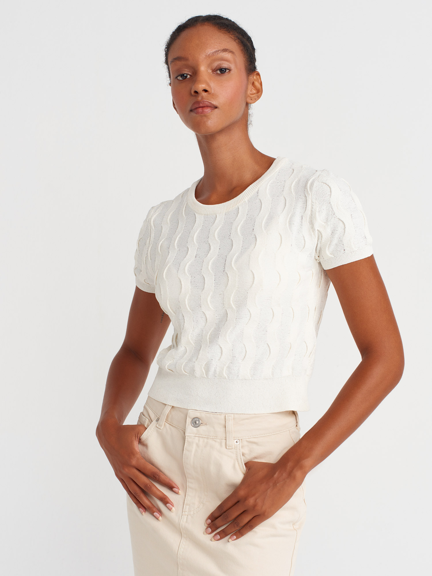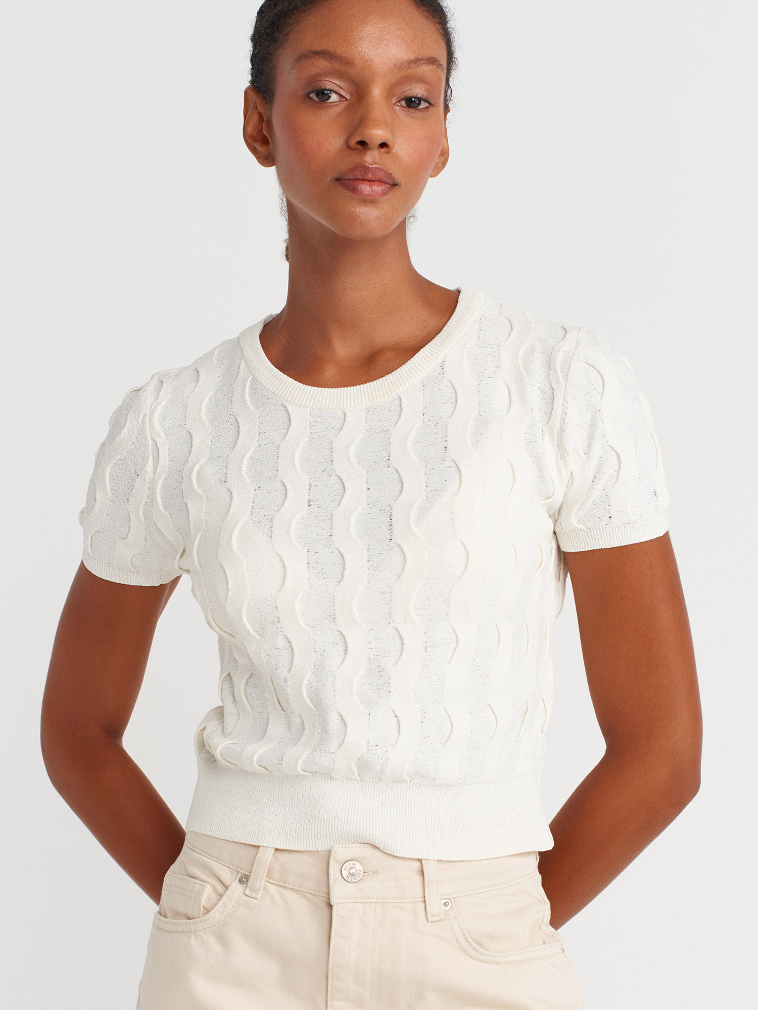 Dilvin 10788 Bisiklet Yaka Dokulu Triko Bluz