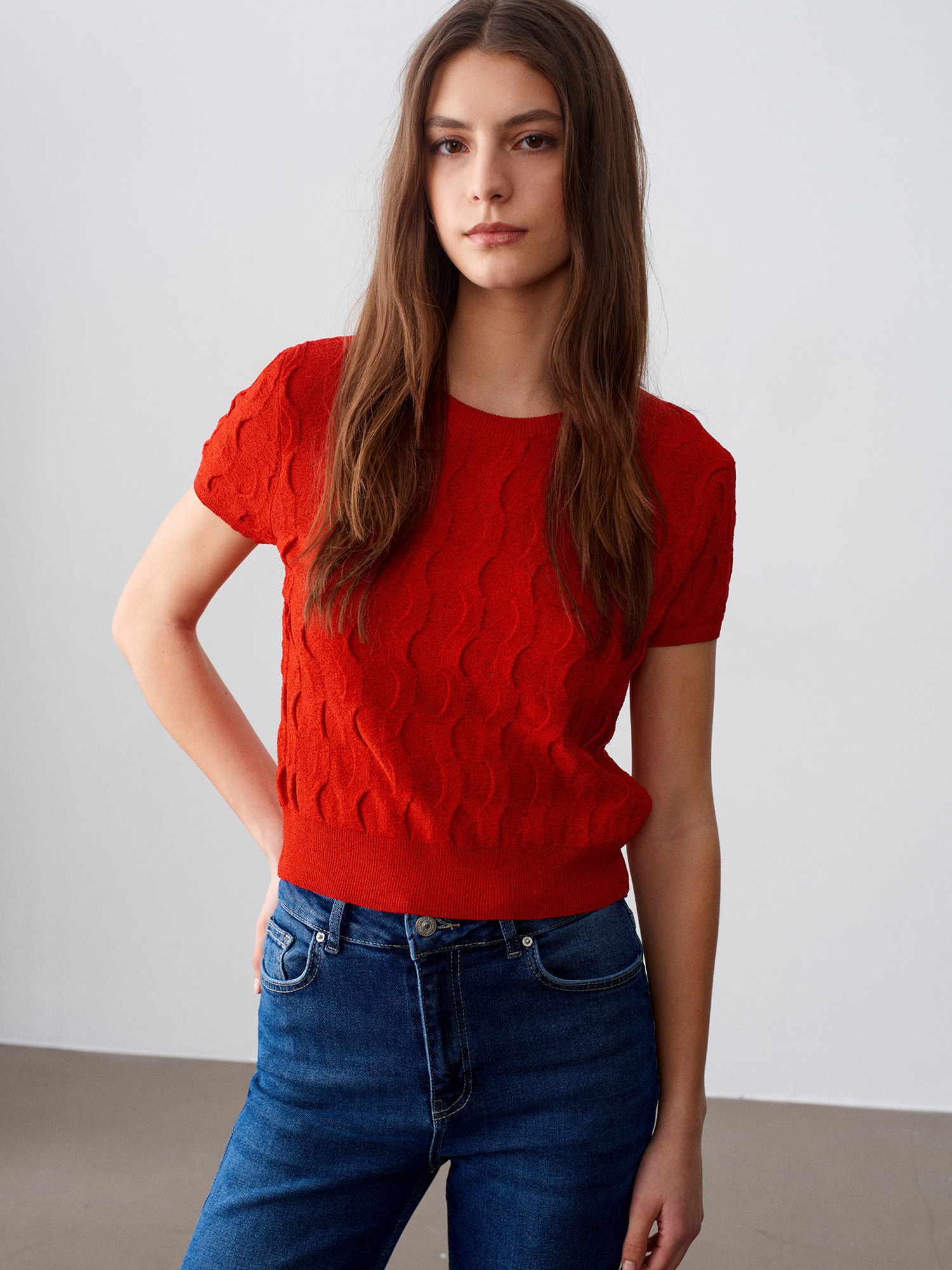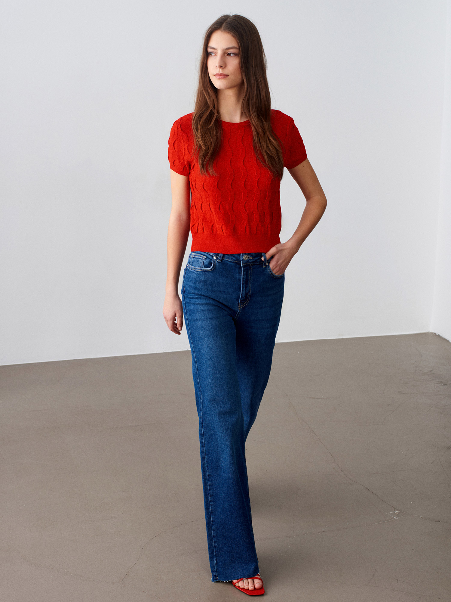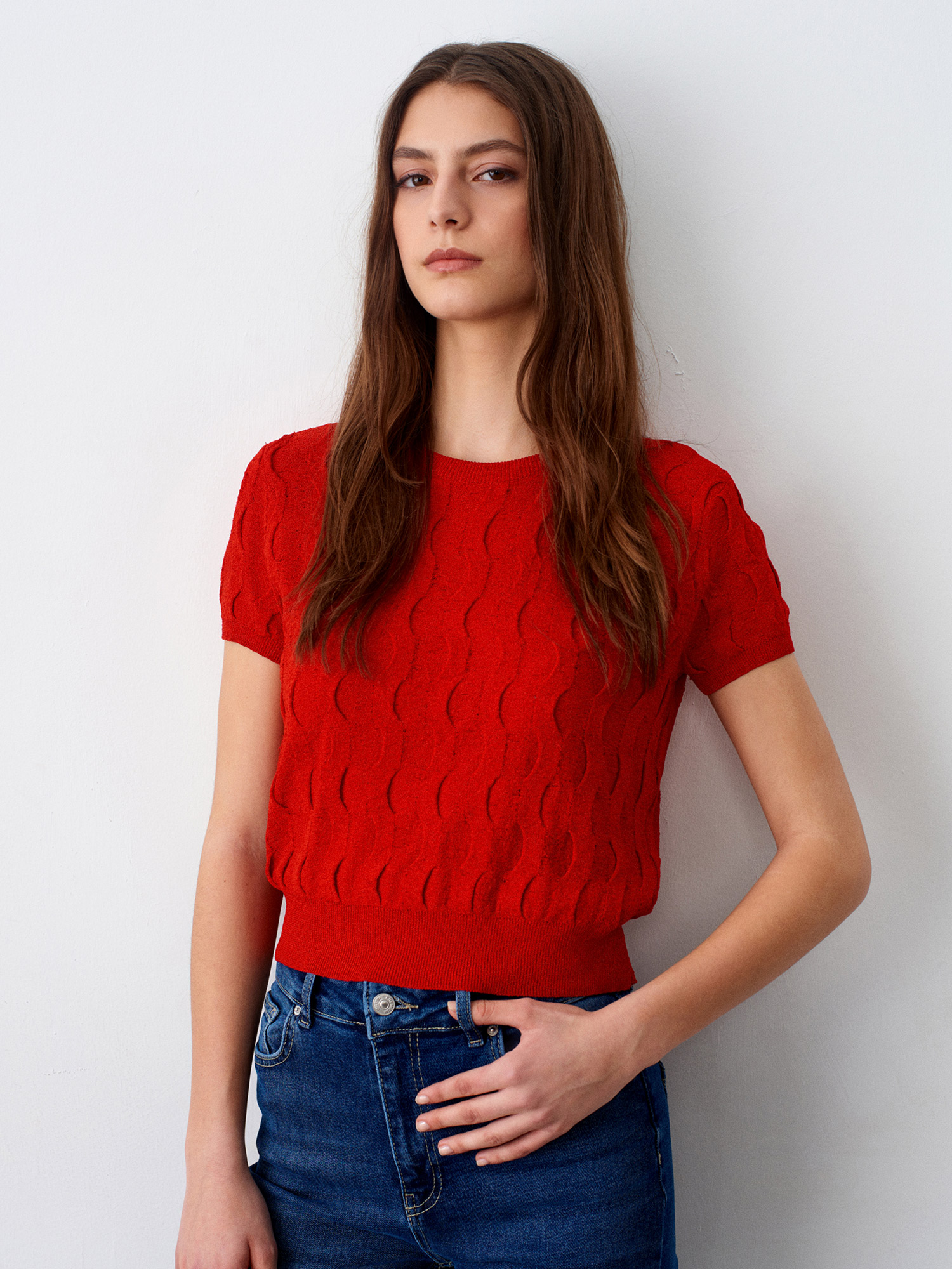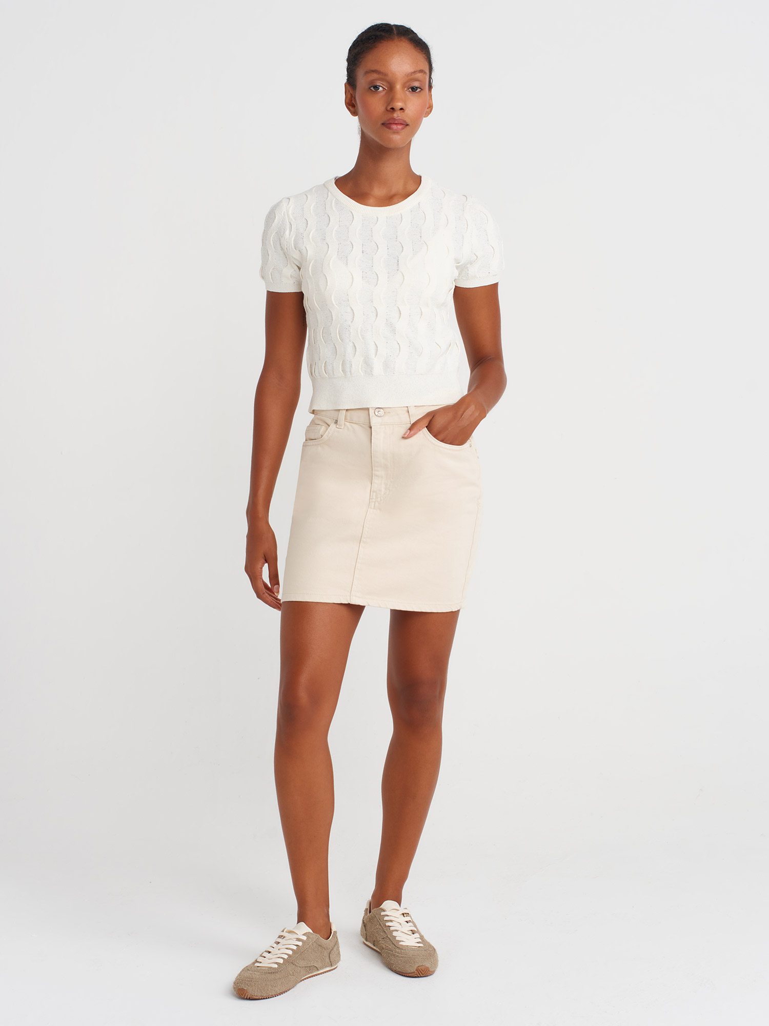 Dilvin 10788 Bisiklet Yaka Dokulu Triko Bluz