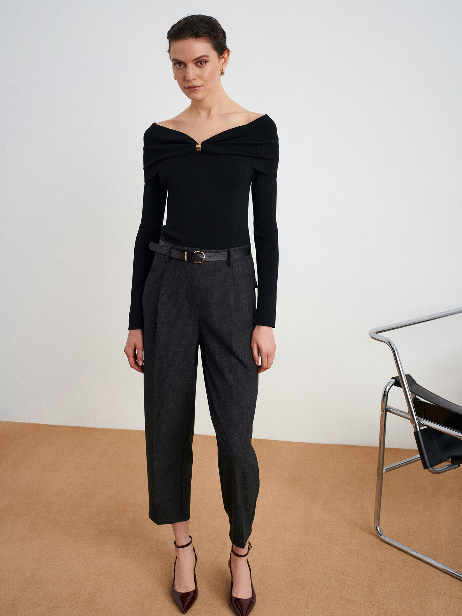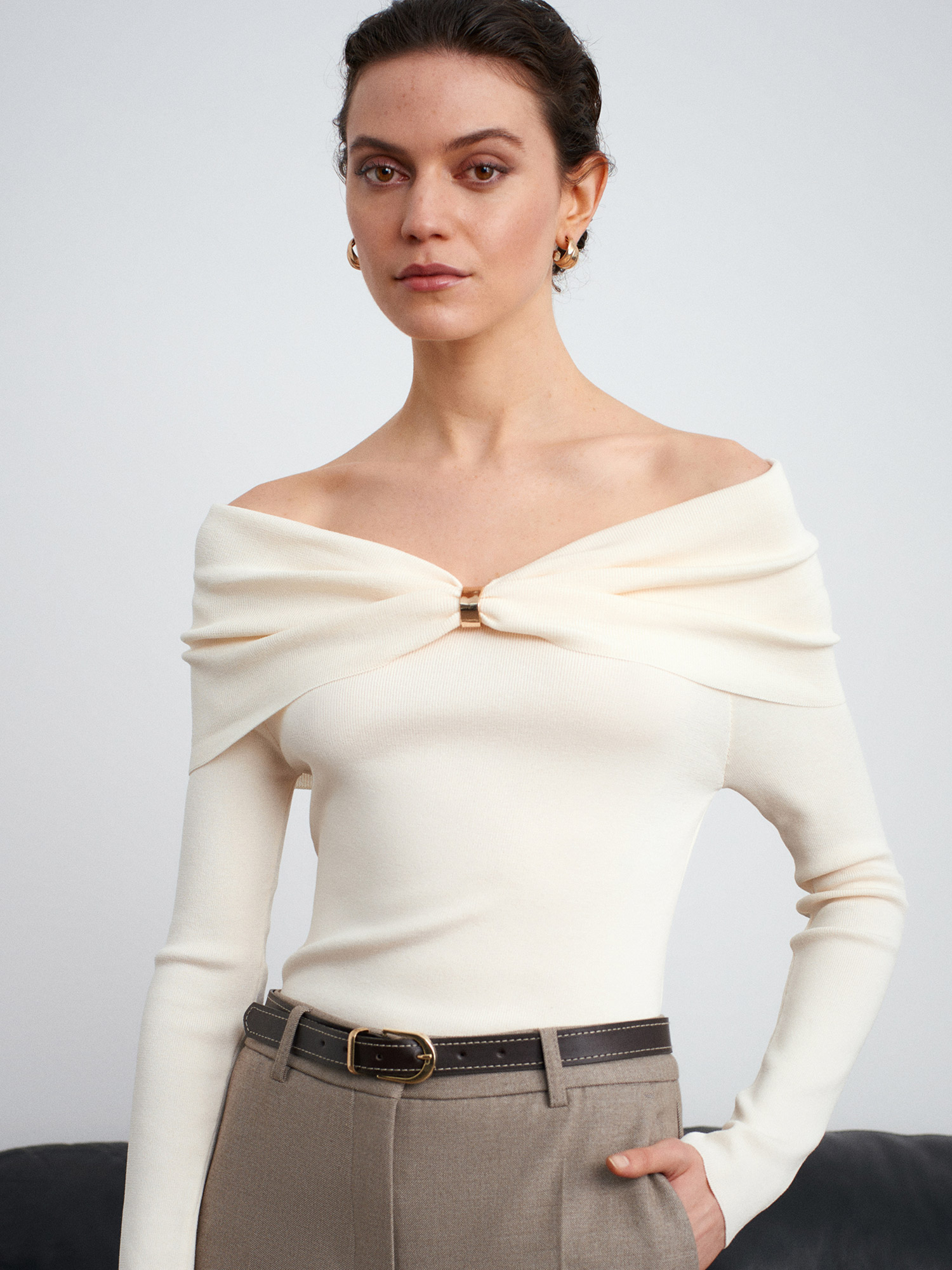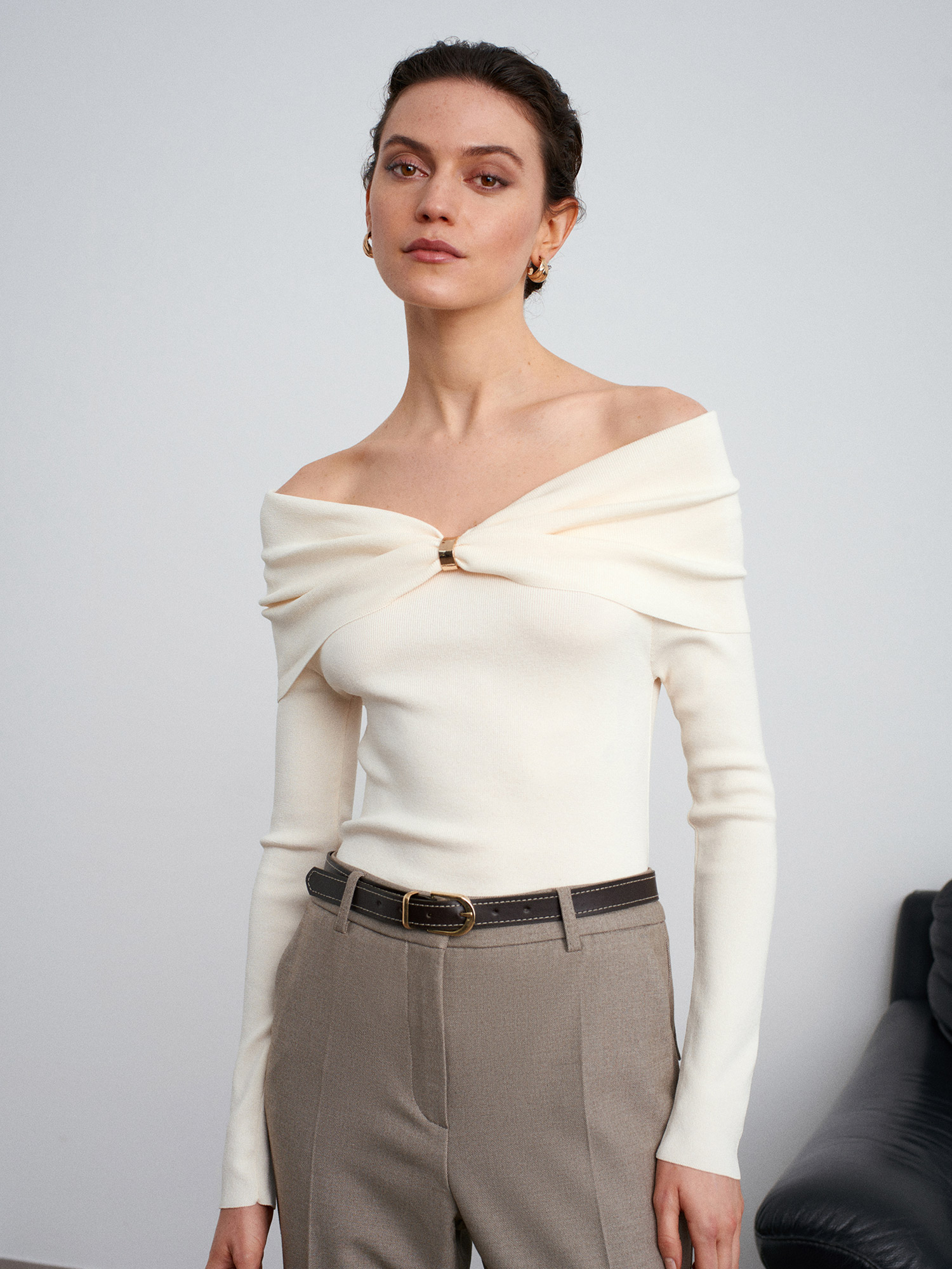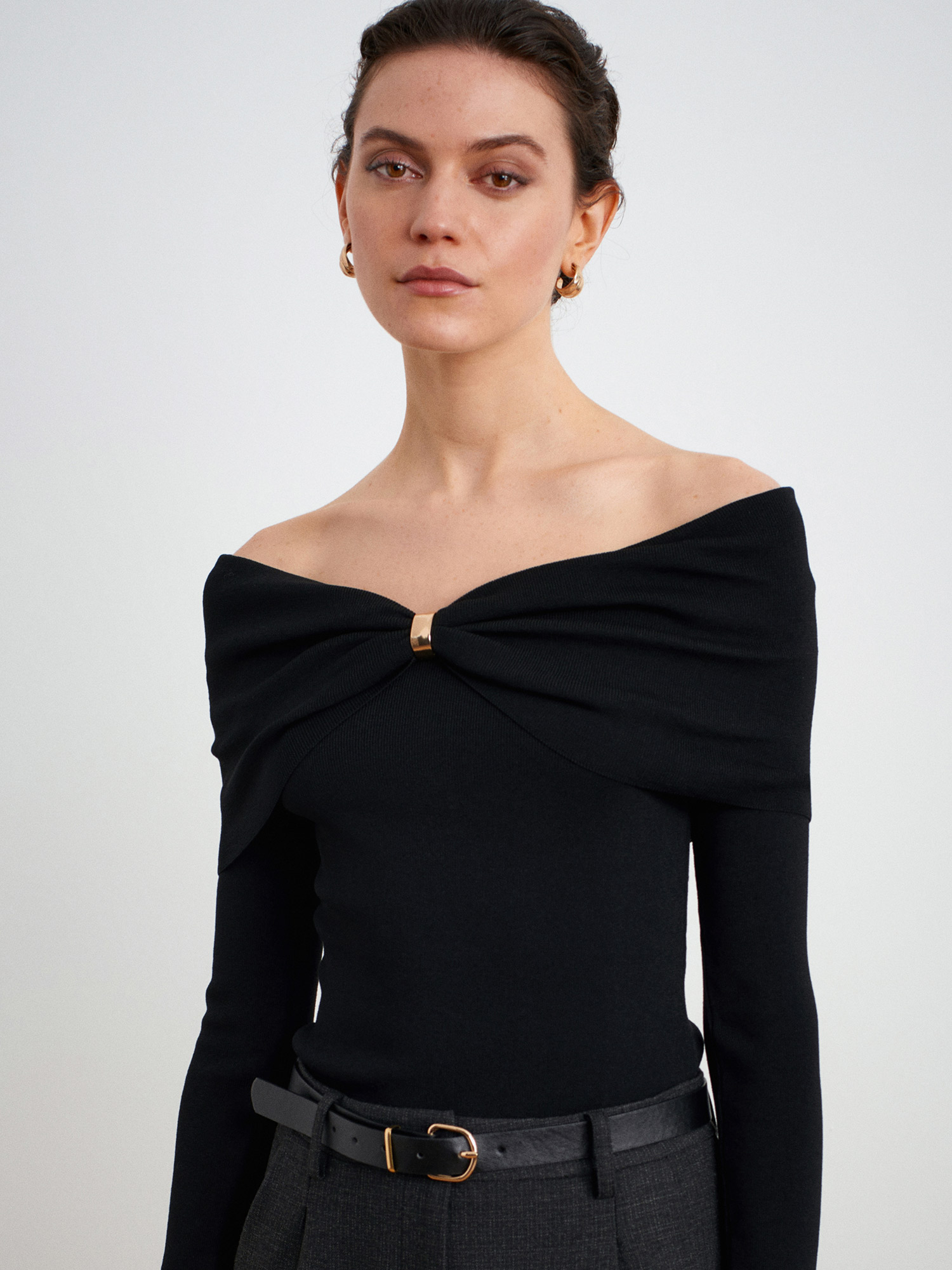 DİLVİN 10820 BARDOT YAKA AKSESUARLI TRİKO;