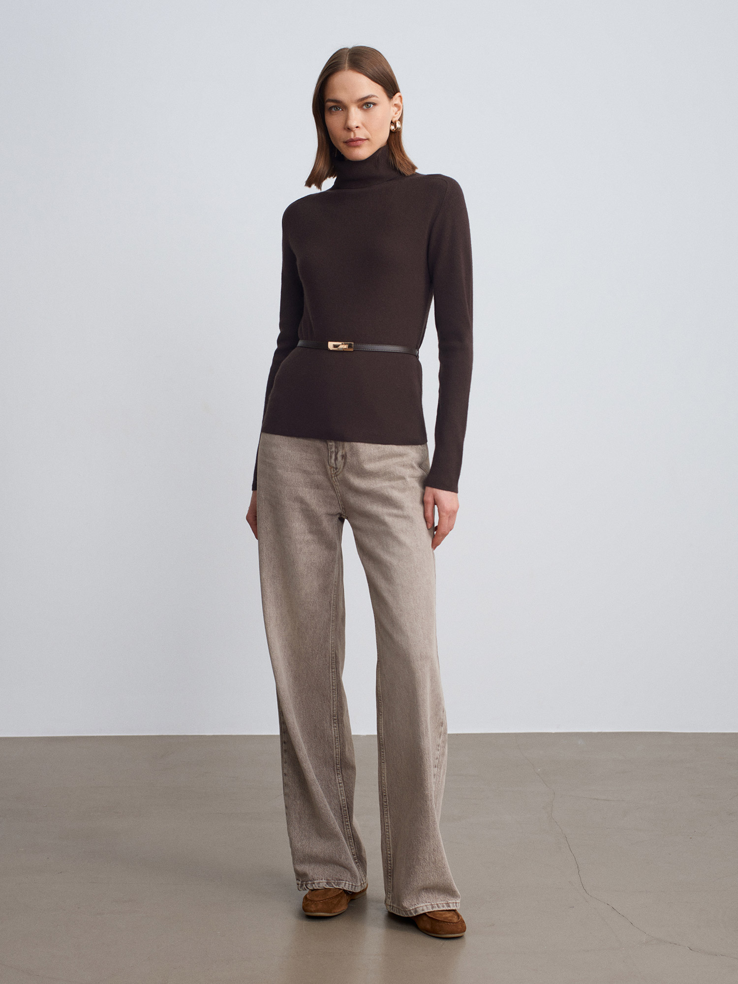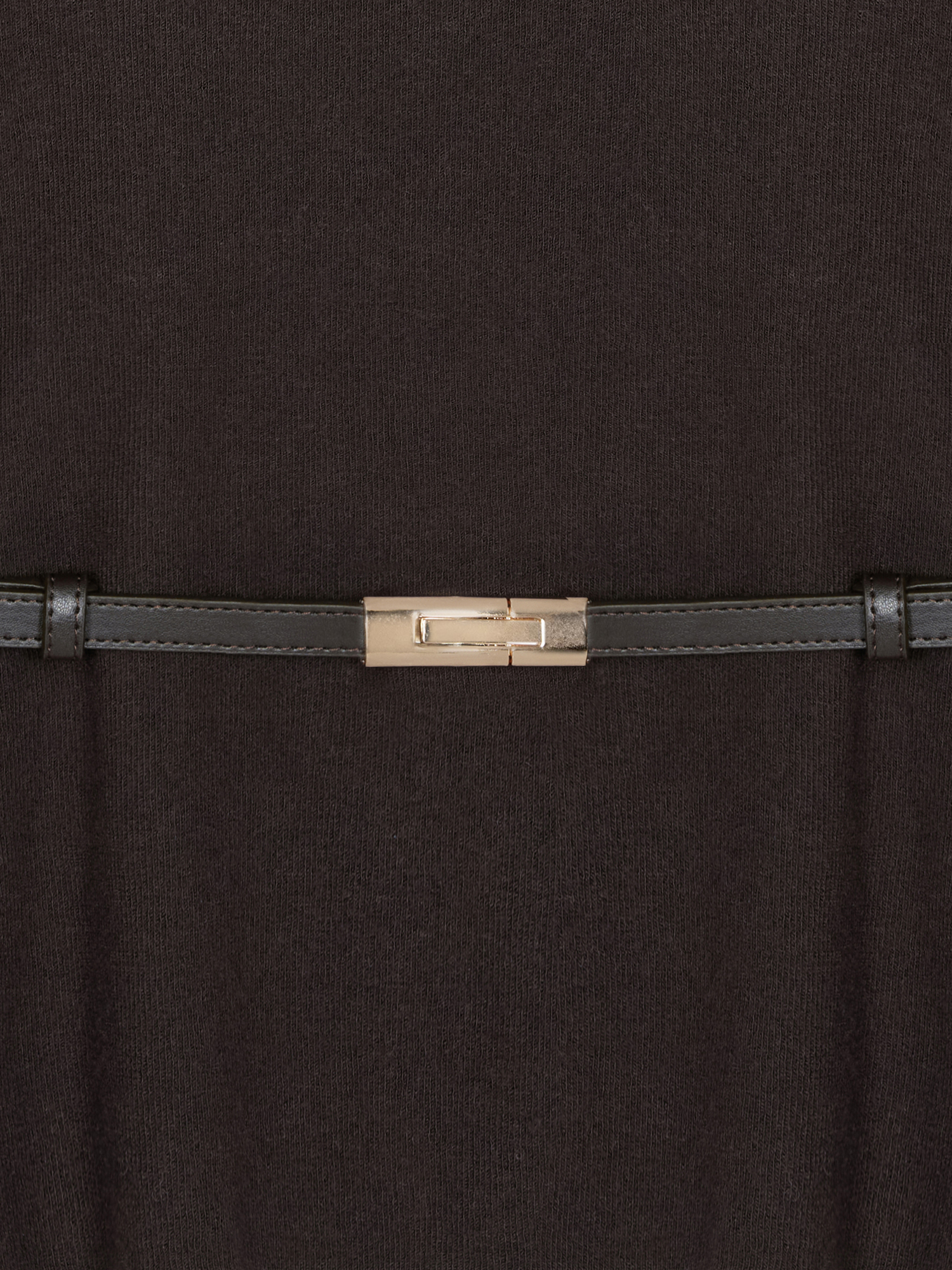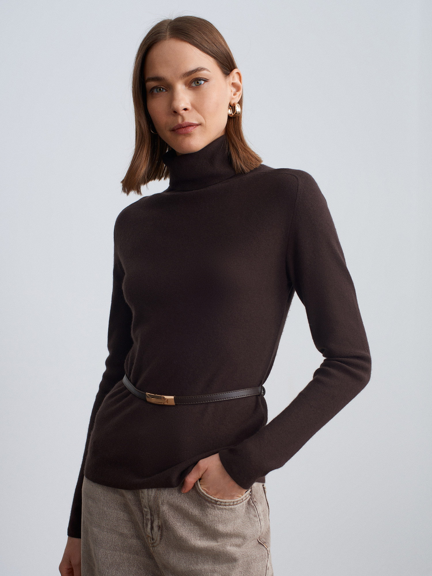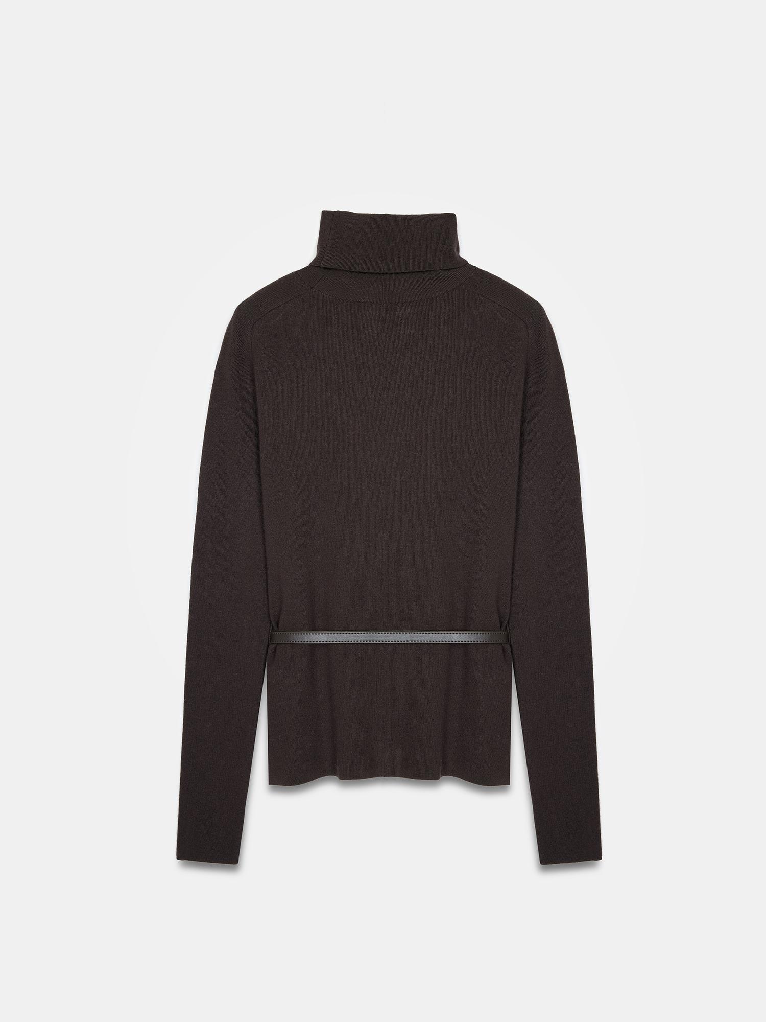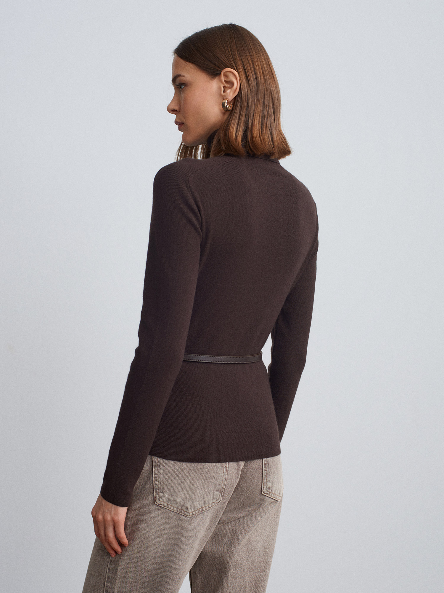 Dilvin 10861 Kaşmir Karışımlı Kemerli Kazak-Koyu Kahve