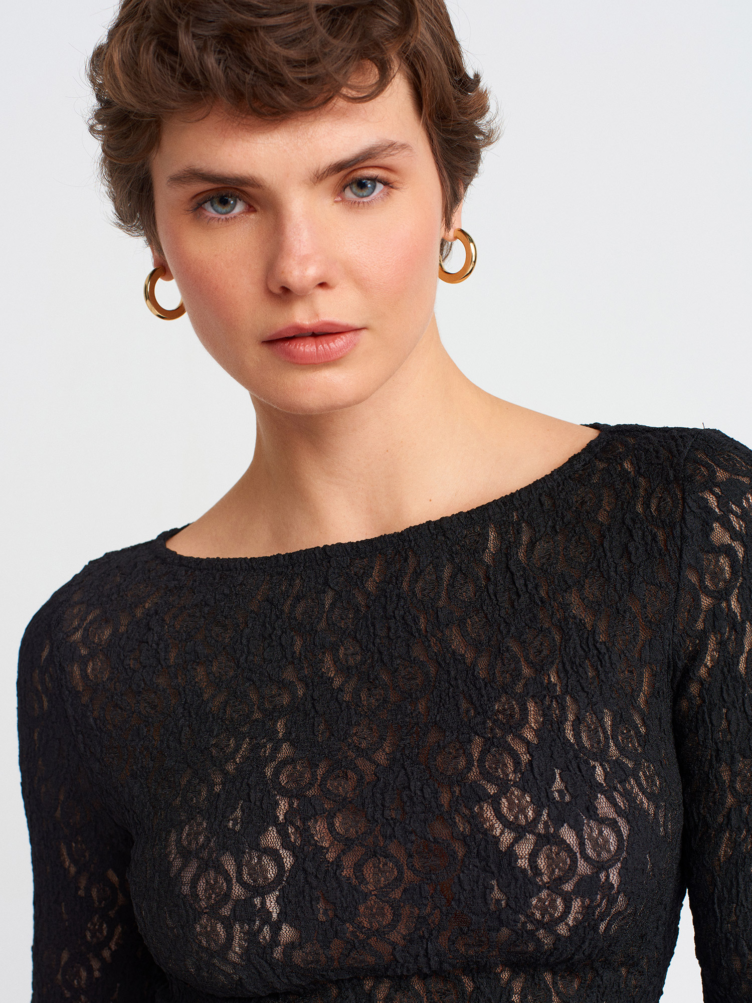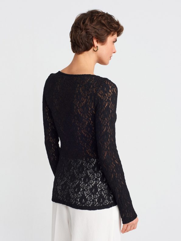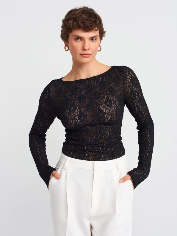 Dilvin 31312 Kayık Yaka Dantel Top