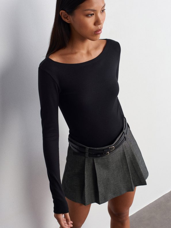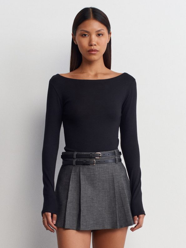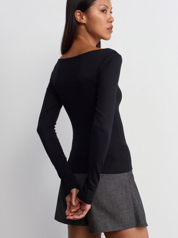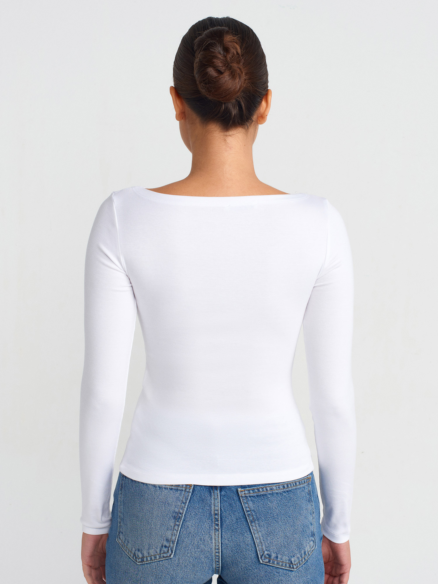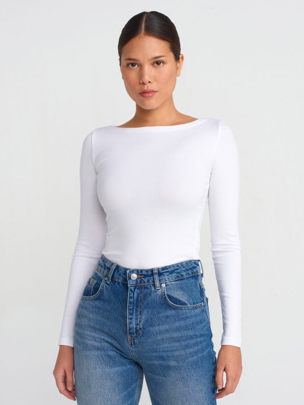 Dilvin 31332 Kayık Yaka Uzun Kollu Top
