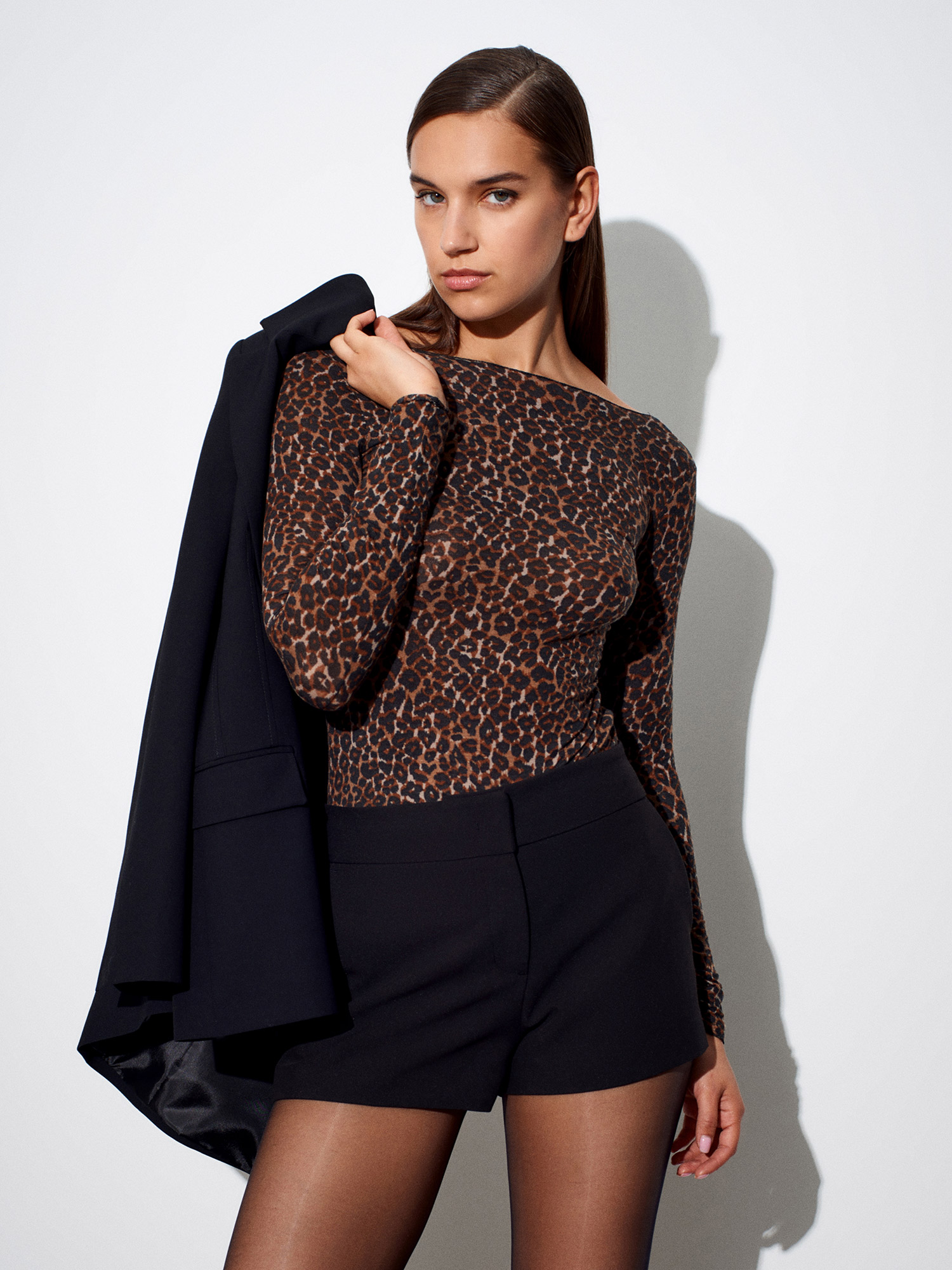 DİLVİN 32347 LEOPAR DESENLİ KAŞMİR BLUZ;