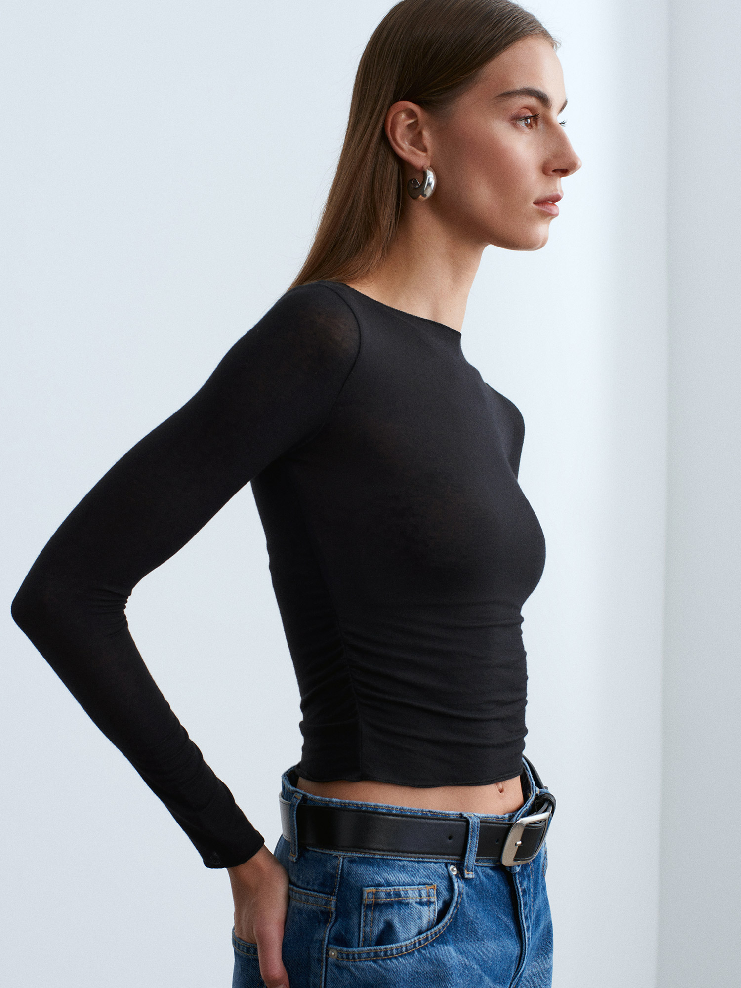 DİLVİN 32371 KAYIK YAKA BÜZGÜLÜ TOP;