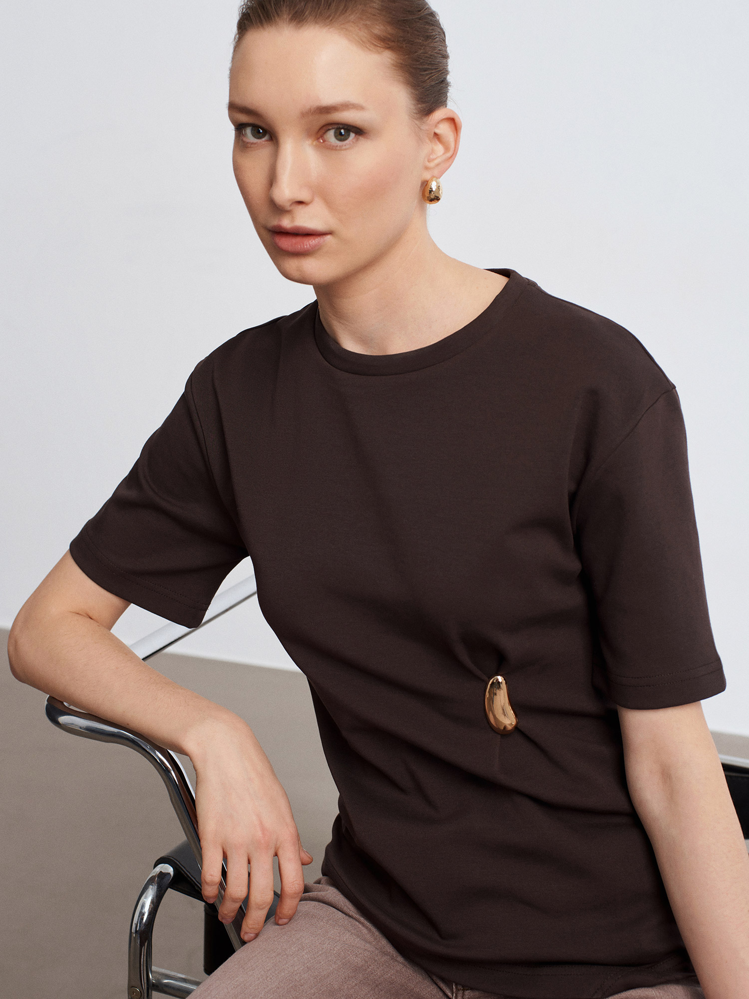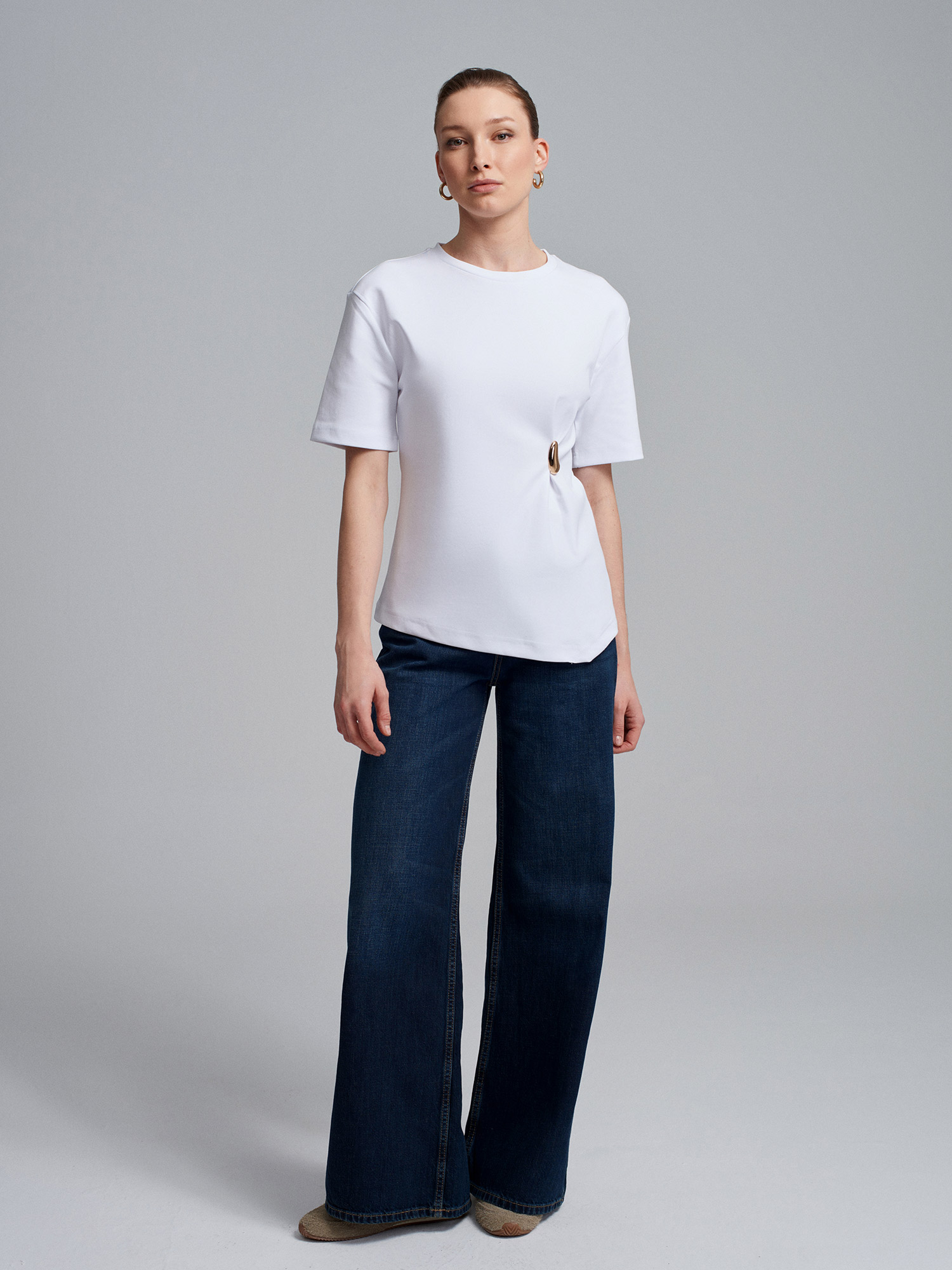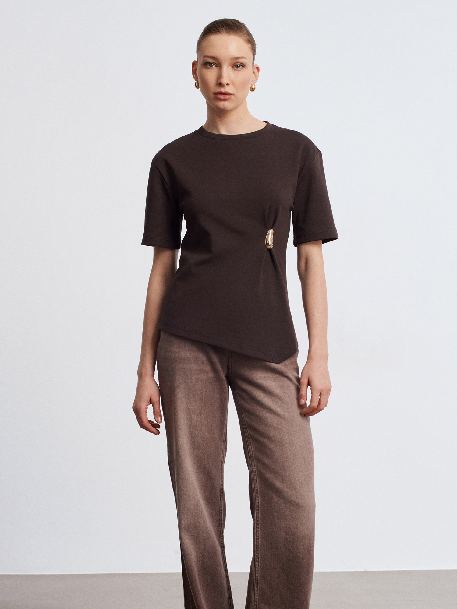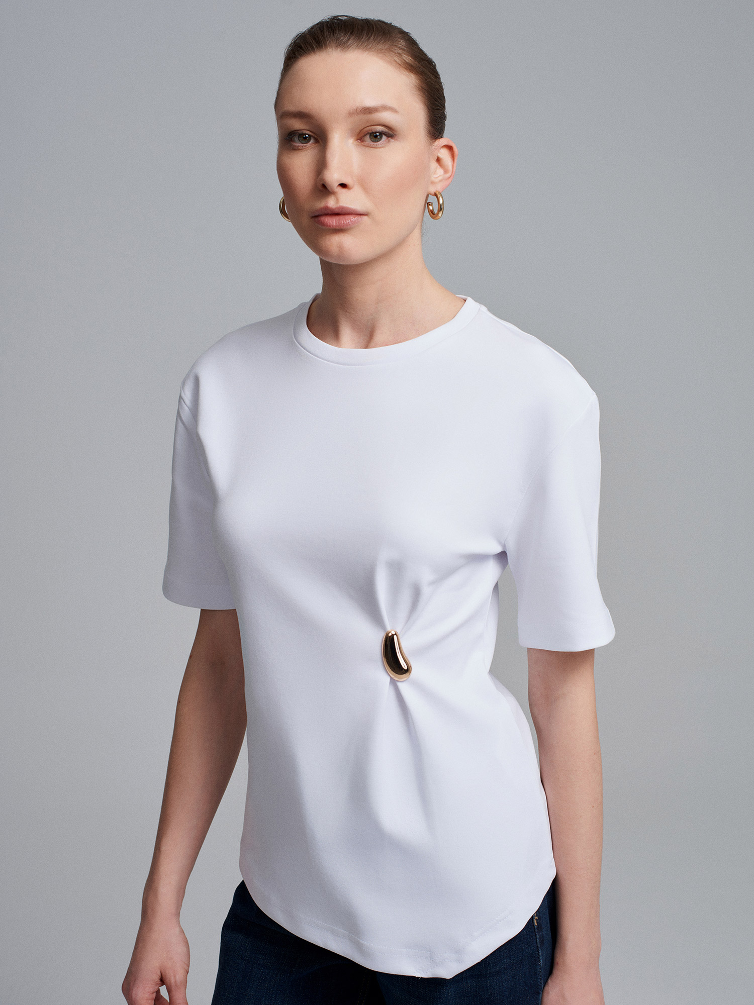 DİLVİN 32445 AKSESUAR DETAYLI KISA KOL TSHIRT;