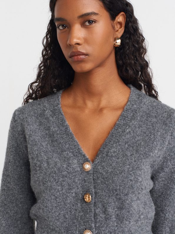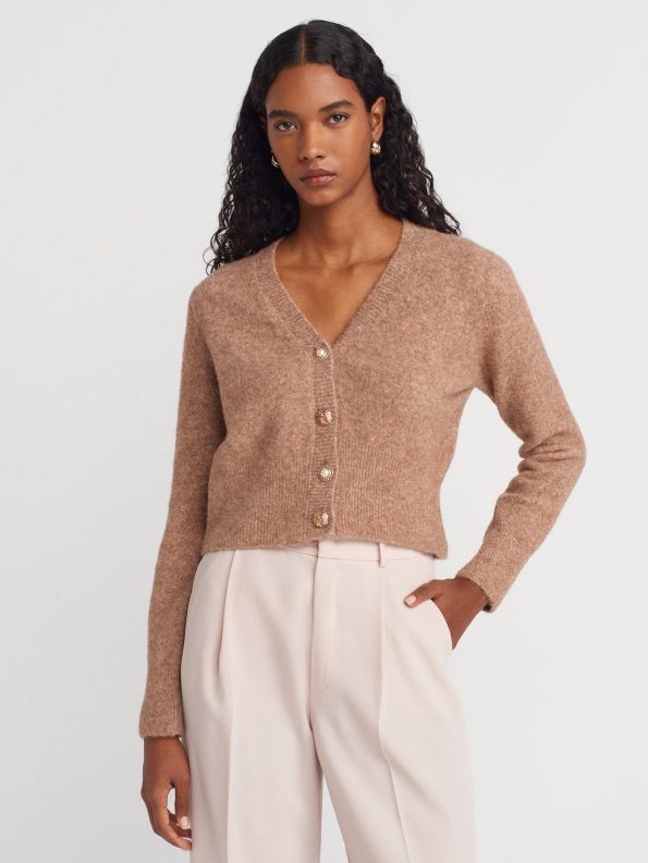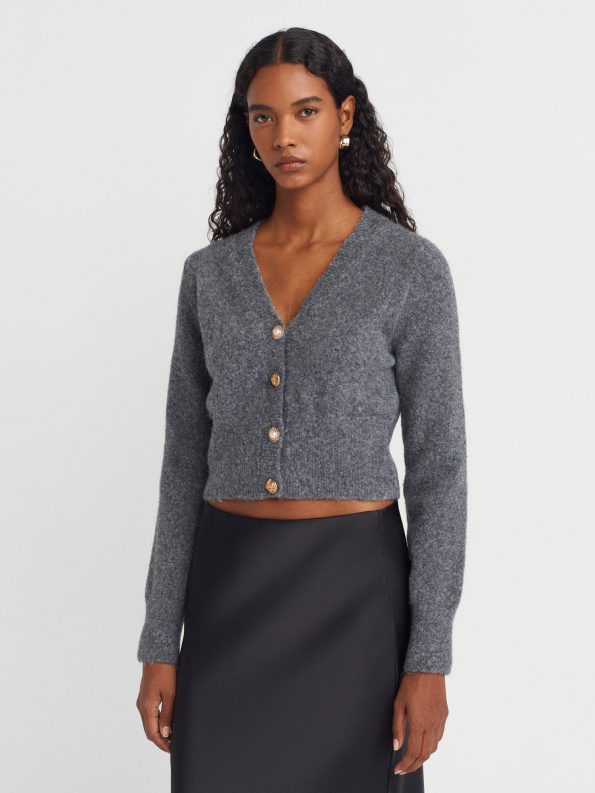 Dilvin 60273 V Yaka Düğmeli Triko Hırka