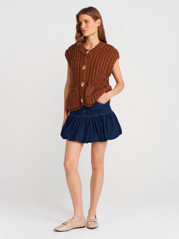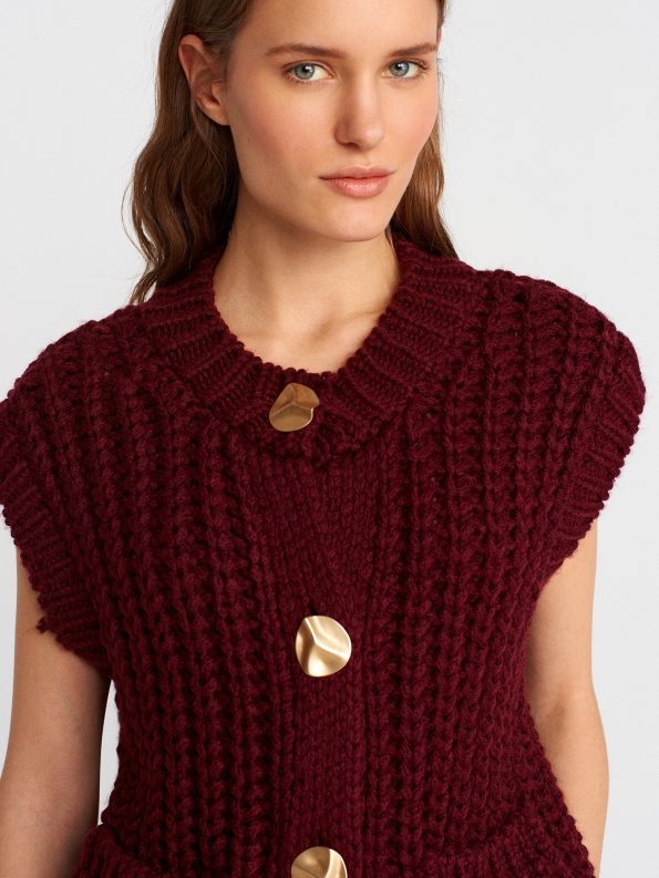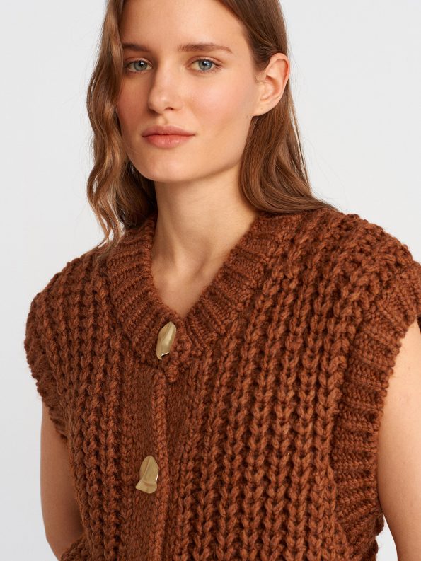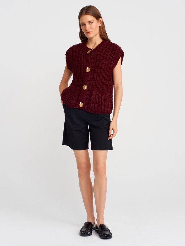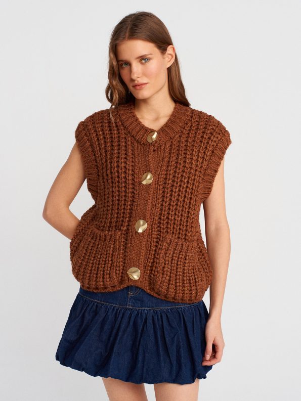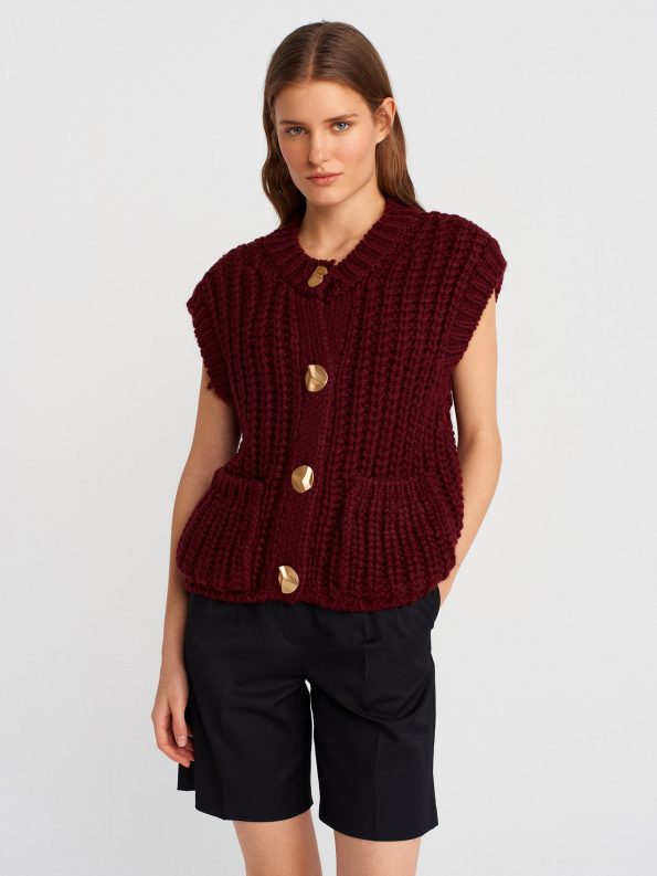 Etiket: Dilvin 60961 Bisiklet Yaka Yumuşak Dokulu Cepli Düğmeli Triko Yelek