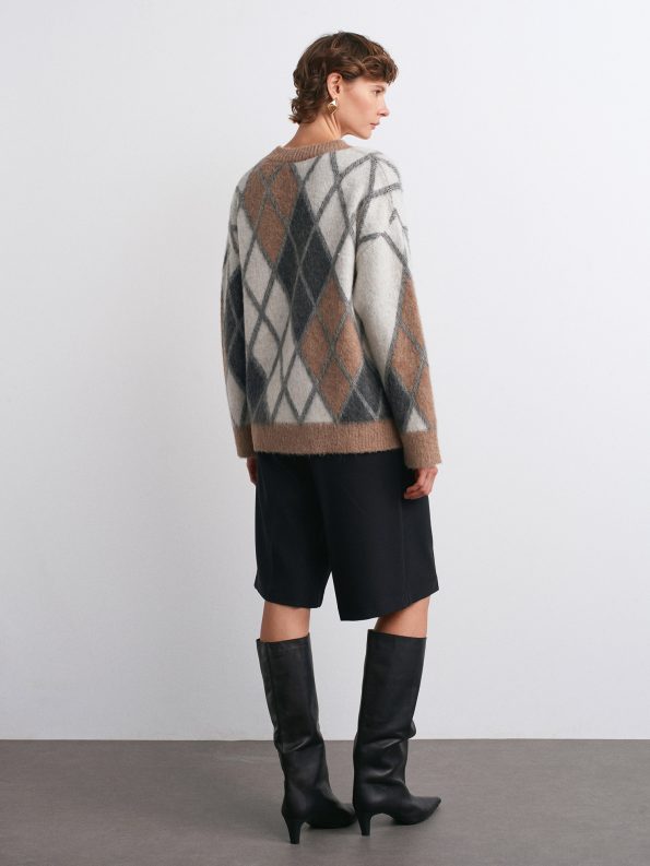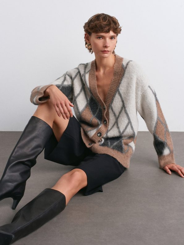 Etiket: Dilvin 60989 V Yaka Baklava Desenli Şardonlu Triko Hırka-Vizon