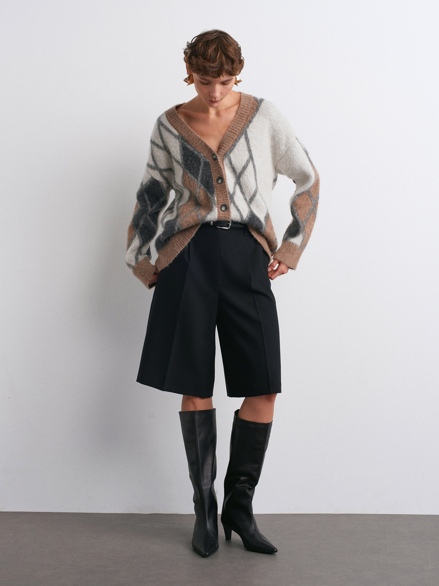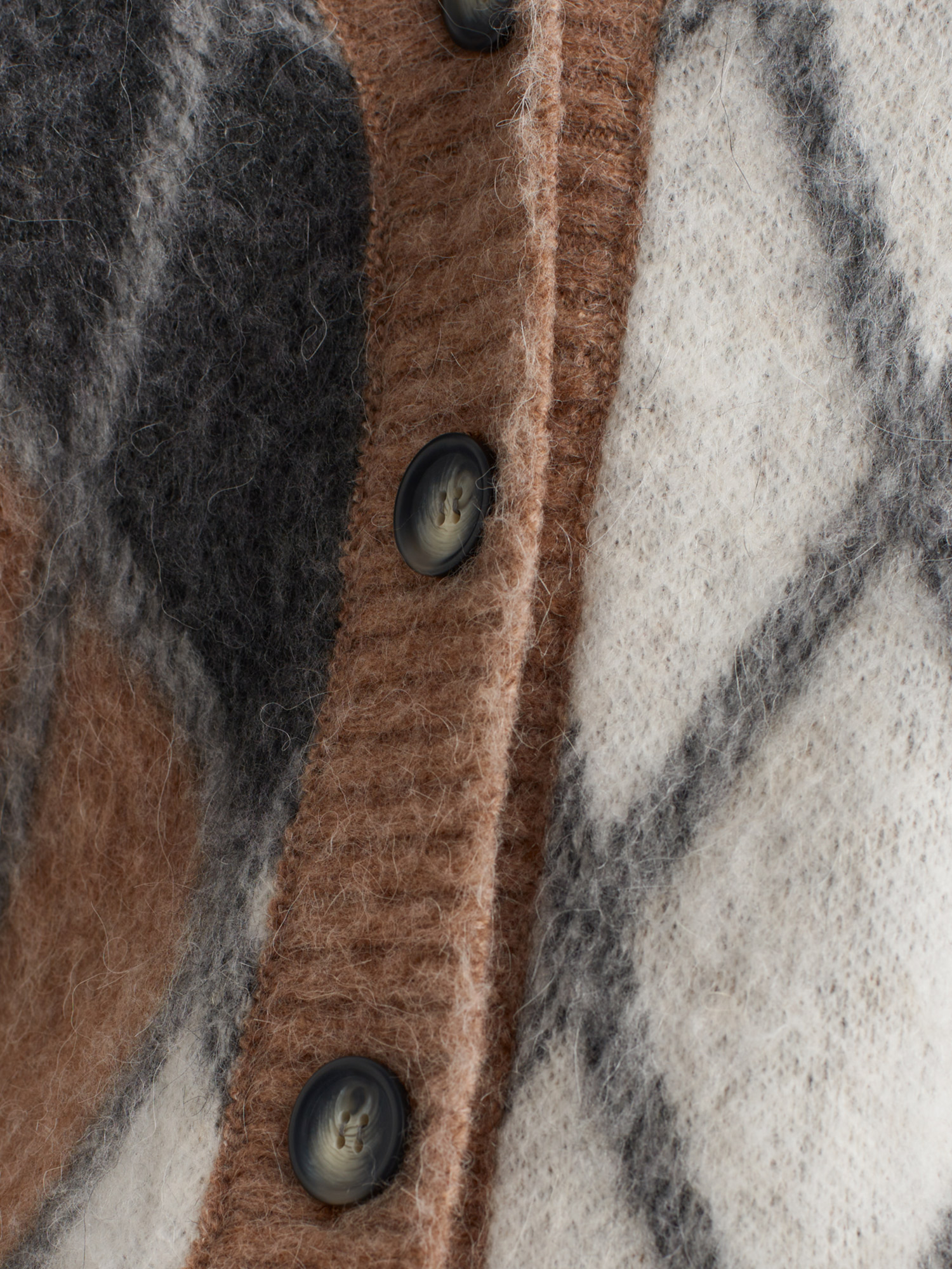 Dilvin 60989 V Yaka Baklava Desenli Şardonlu Triko Hırka-Vizon