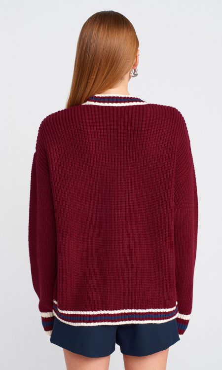 BSL 17019 Geniş Yaka Detaylı Uzun Kol Triko Body
