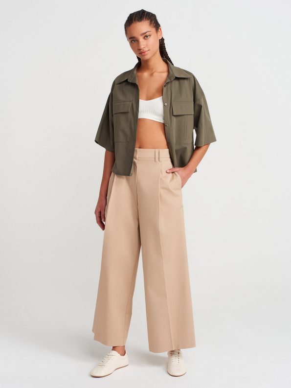 Dİlvin 71634 Pilili Geniş Paça Pantolon;