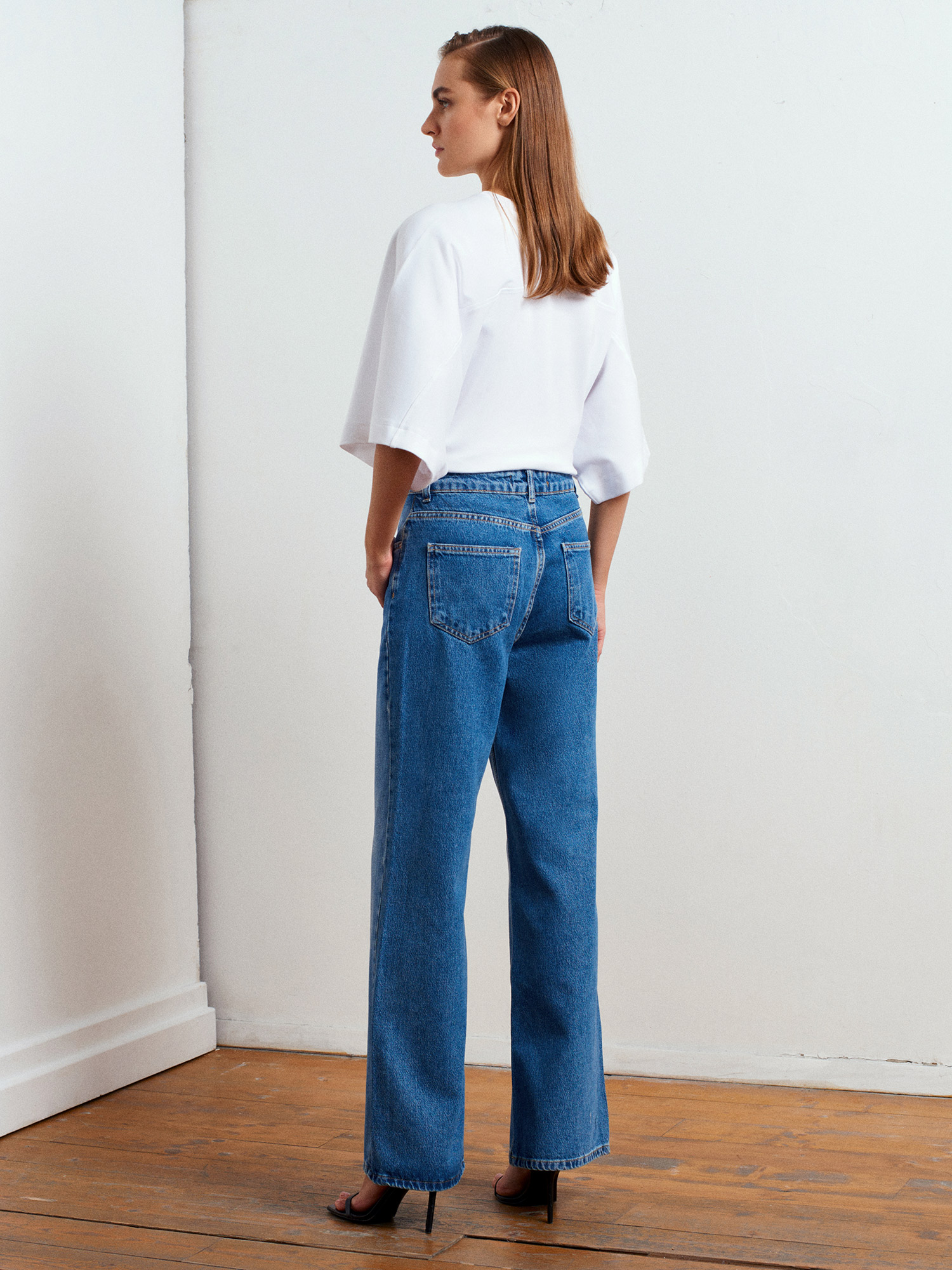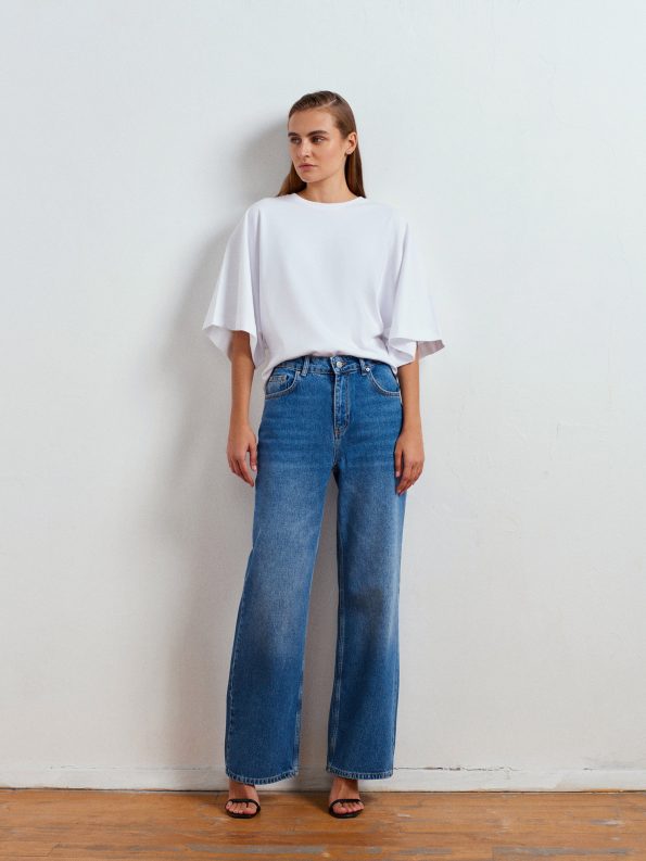 Dilvin 72053 Wide Leg Denim Pantolon-Mavi