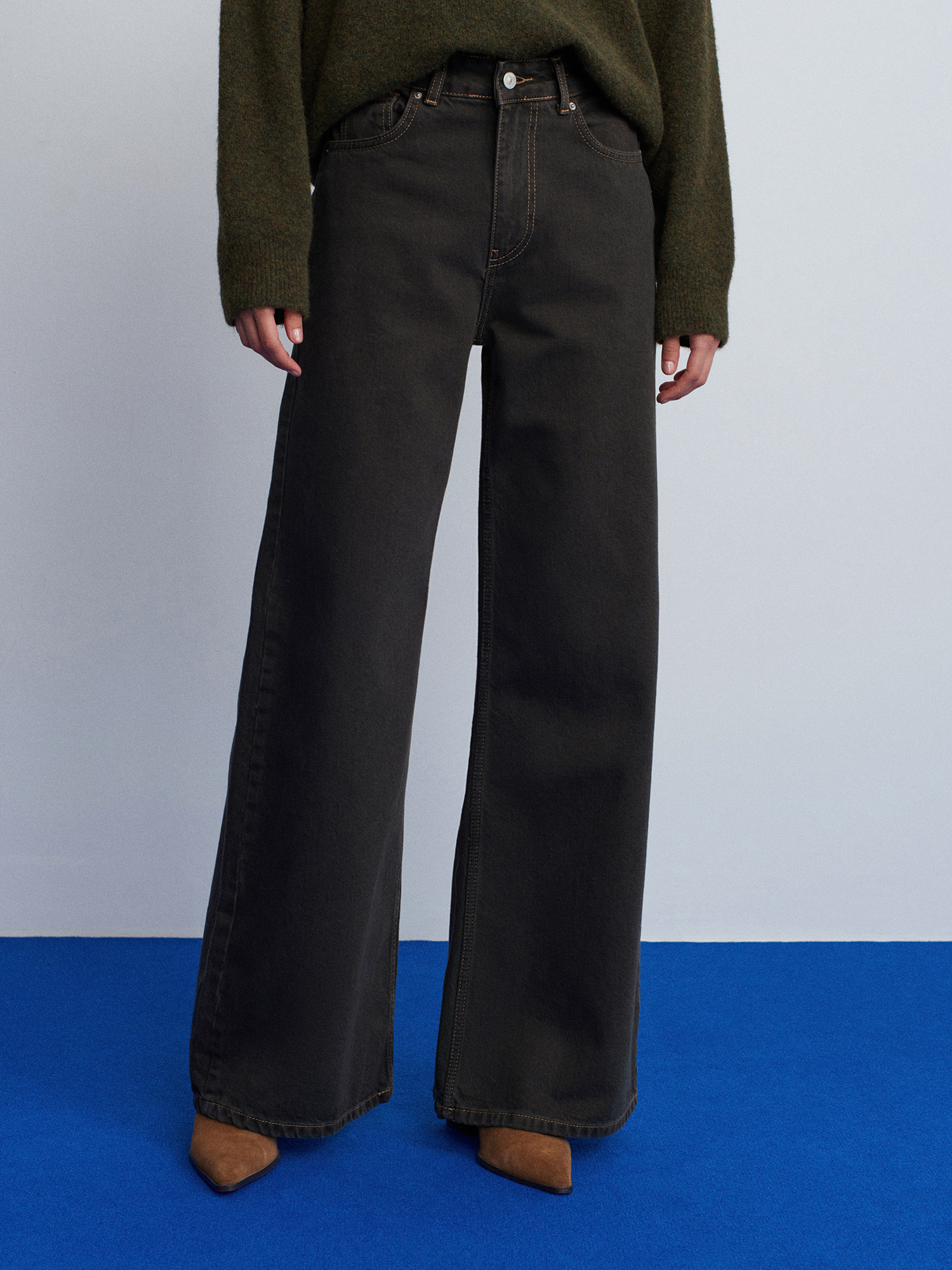 Dilvin 72113 %100 Pamuk Wide Leg Jean-Kahve