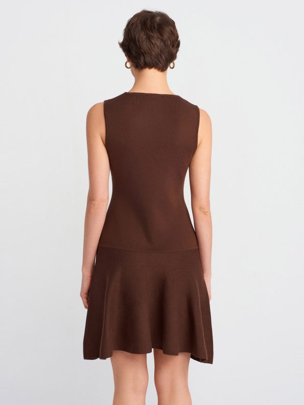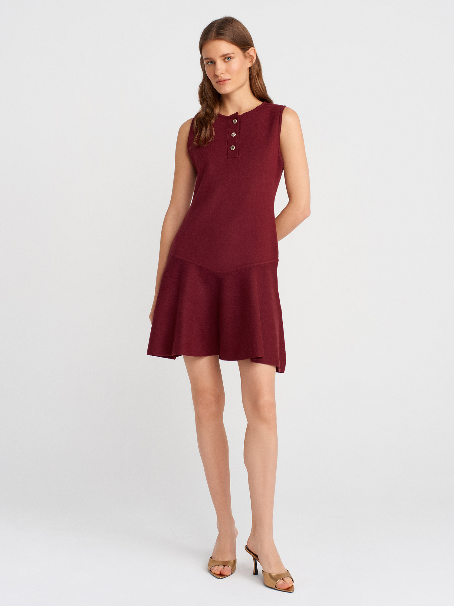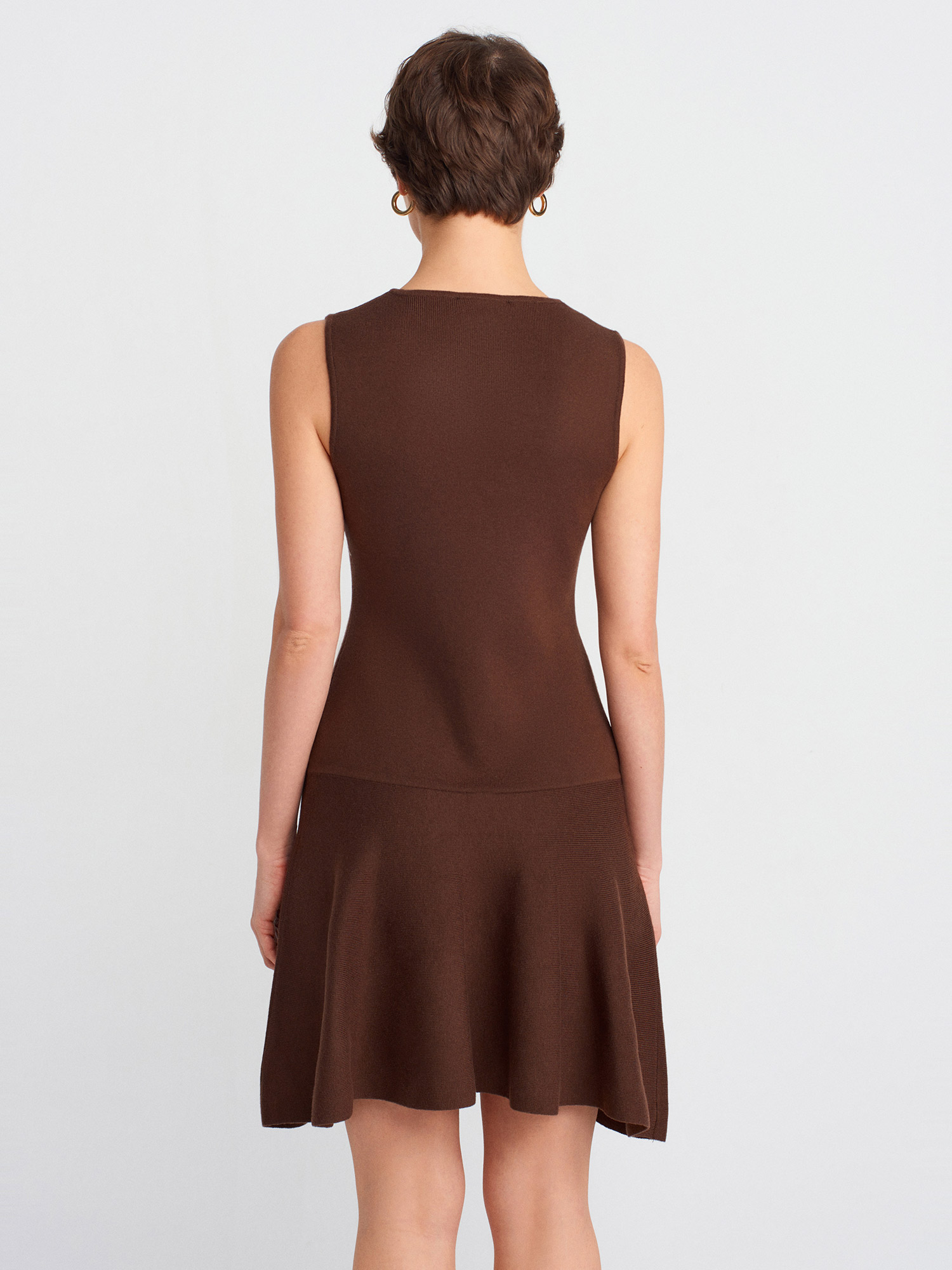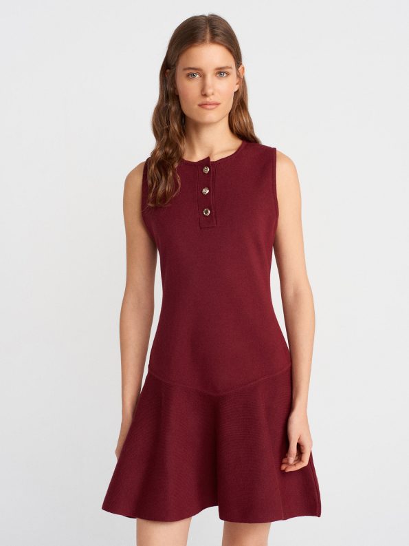 Dilvin 90244 Bisiklet Yaka Düğmeli Volanlı Triko Elbise