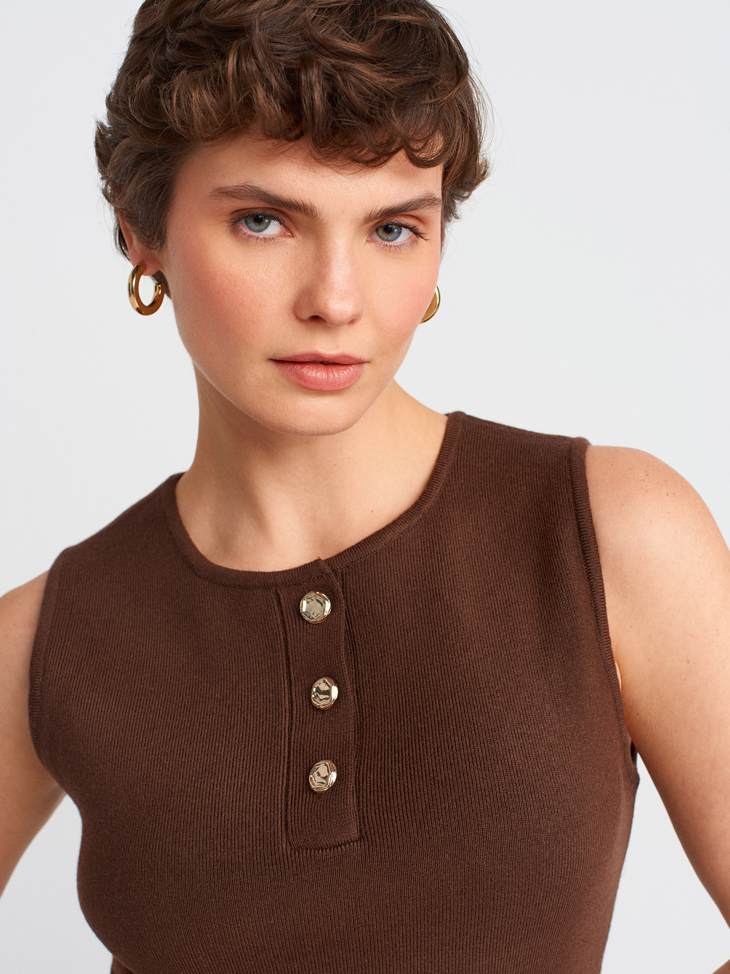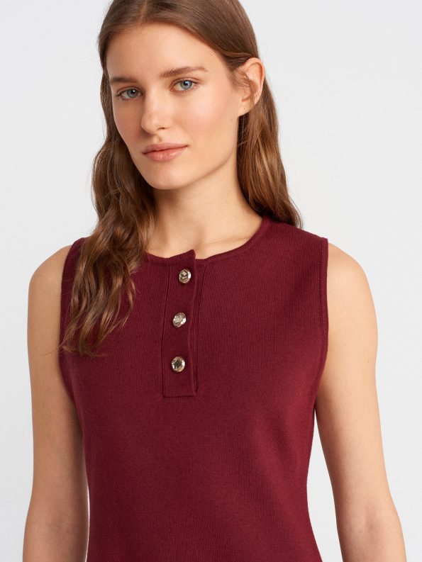 Dilvin 90244 Bisiklet Yaka Düğmeli Volanlı Triko Elbise;