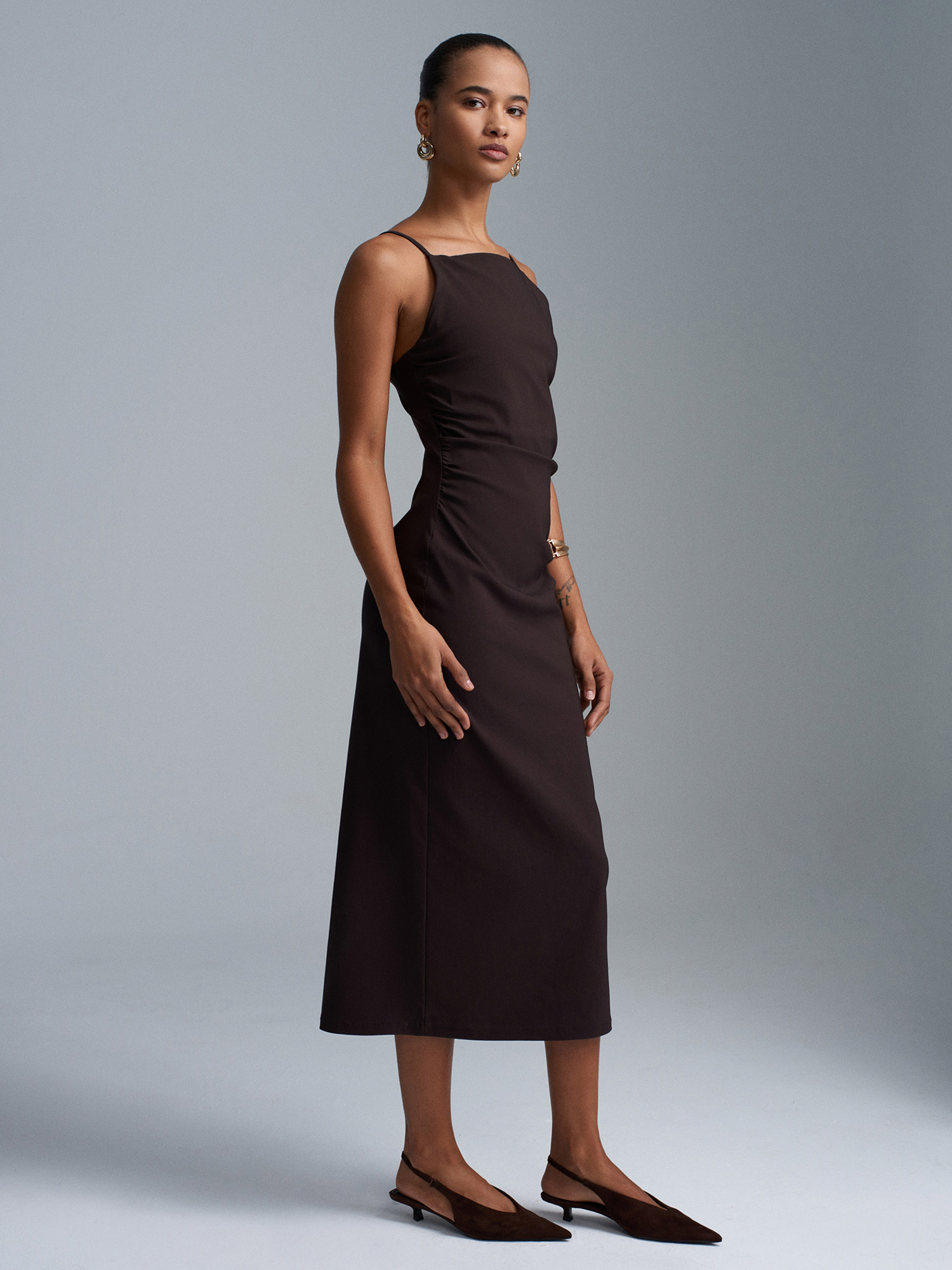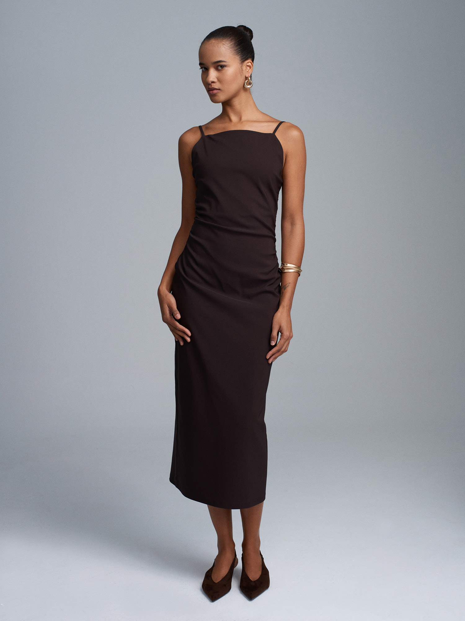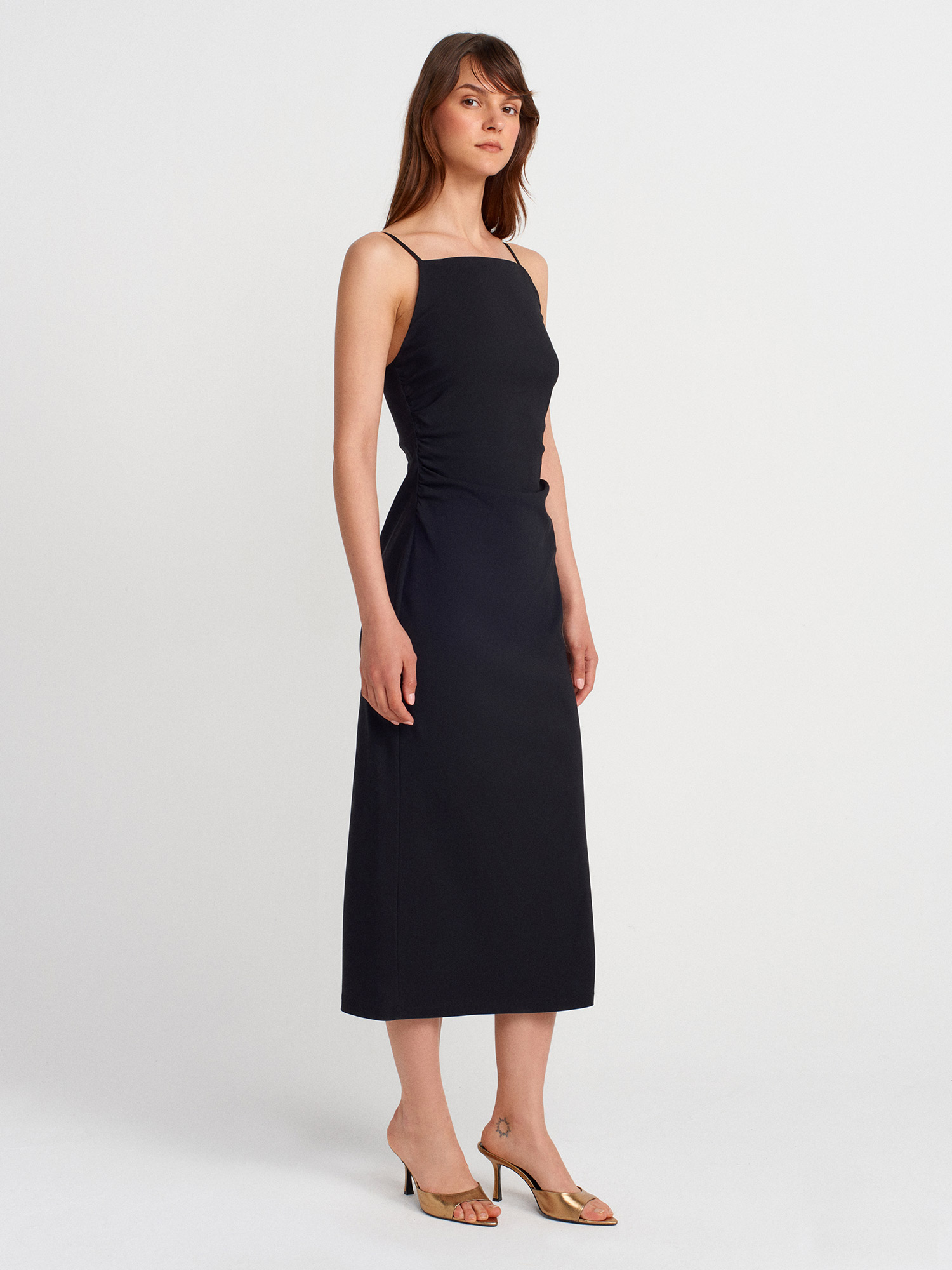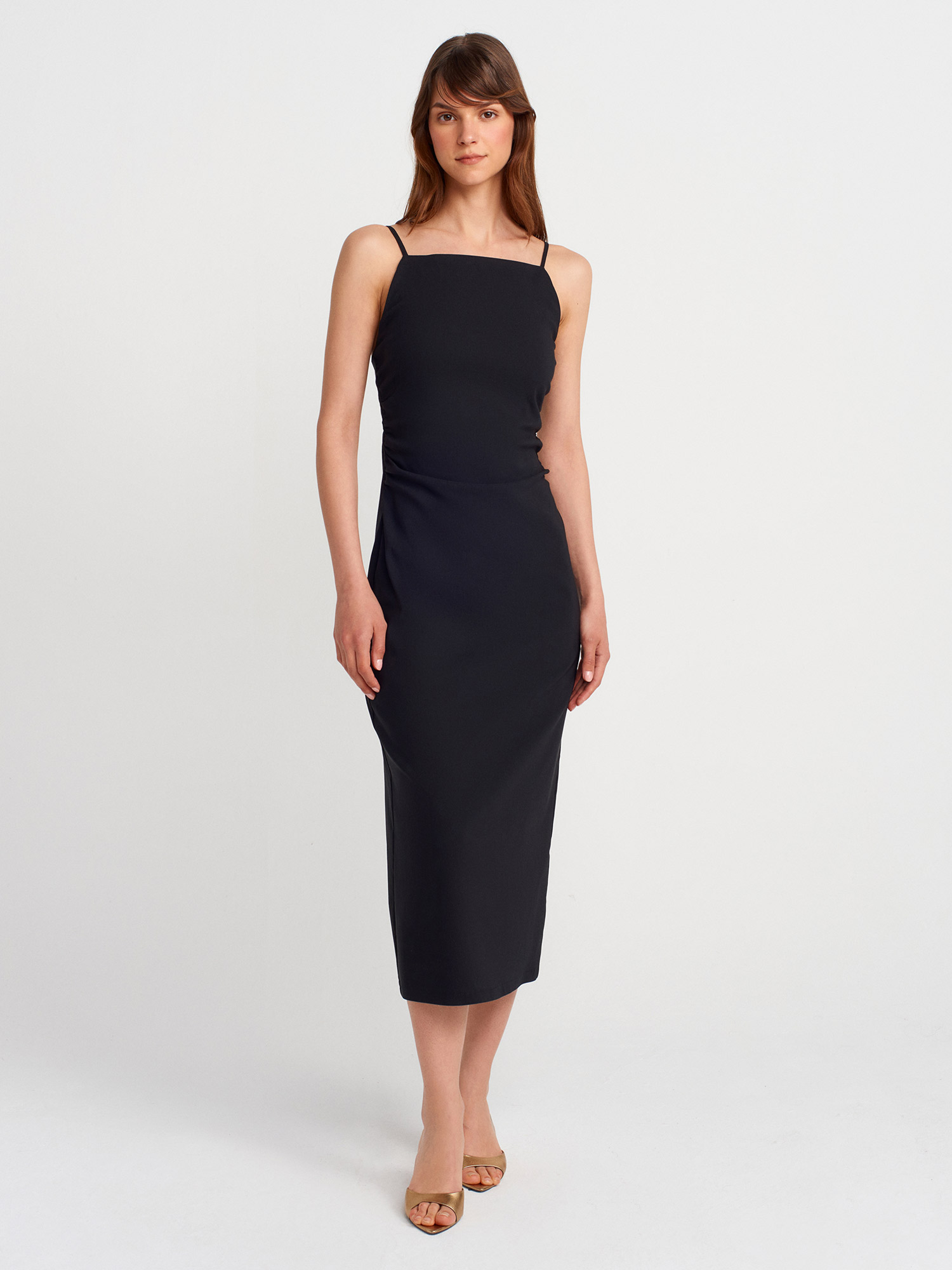 DİLVİN 91479 BÜZGÜLÜ MİDİ ELBİSE;