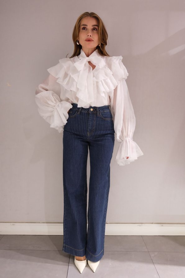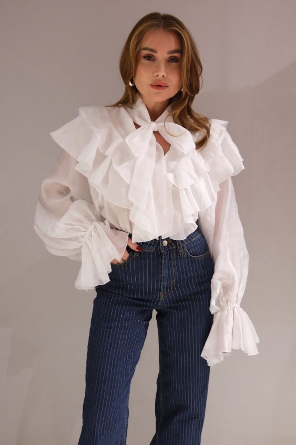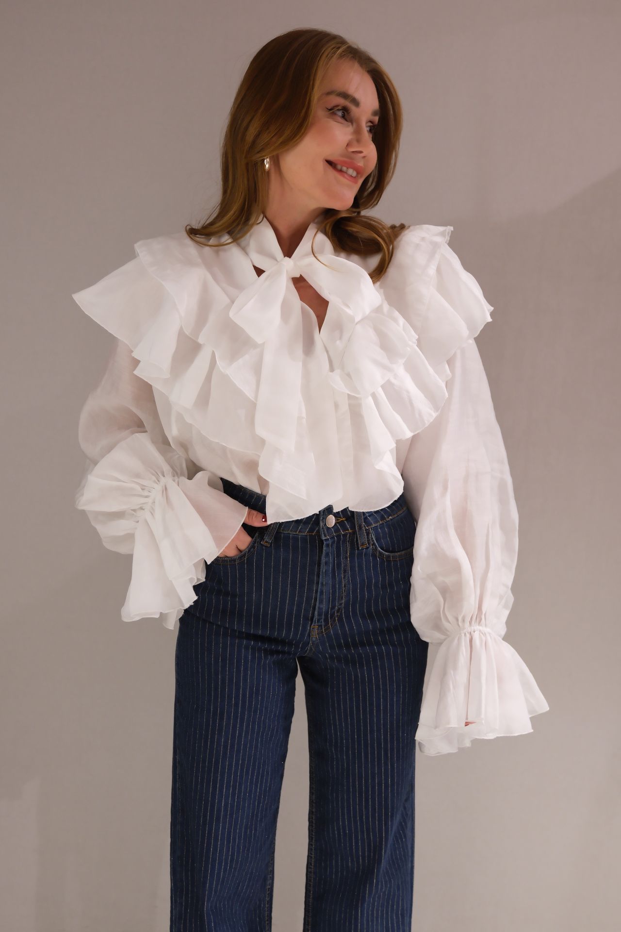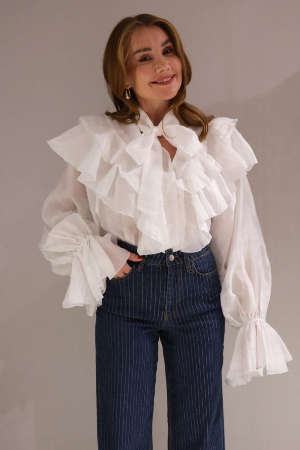 Setre 0205 Ekru Kolsuz Kemer Detaylı Piliseli Gömlek