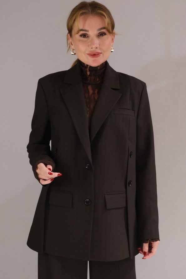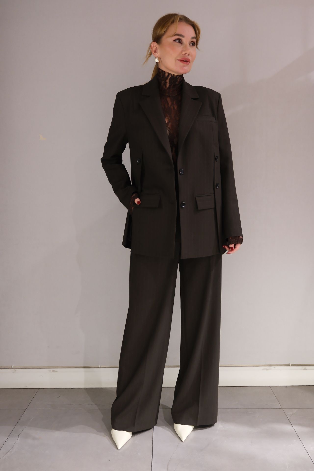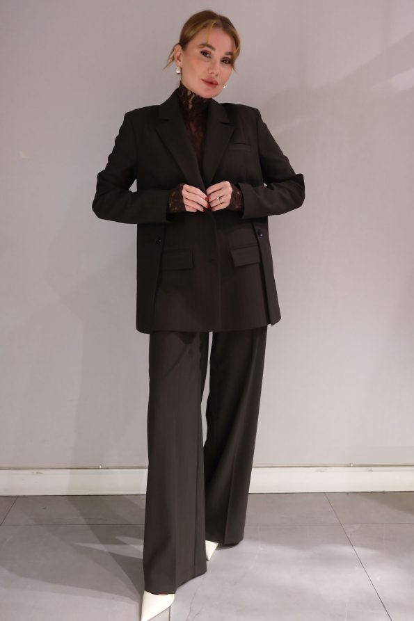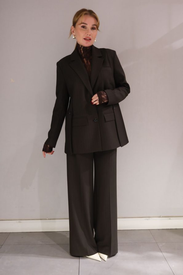 Sofistike ve cesur bir görünüm için tasarlanmış asimetrik kapama cep detaylı ceket ve bel ile cep detaylı pantolonlu takım, şıklığınızı her adımda yansıtır. Modern tasarım ve fonksiyonelliğin mükemmel birleşimi olan bu takım, stilinize zarif bir dokunuş katarken rahatlık ve özgünlük sunar. Asimetrik kapama, cekete farklı bir hava katarken, cep detayları hem şıklık hem de pratiklik sağlar. Bel ve cep detaylarıyla tasarlanmış pantolon ise rahat kesimi ve mükemmel oturuşu ile vücut hatlarını zarifçe vurgular. Kaliteli kumaşı, gün boyu konforlu bir şıklık sunarken, özenle işlenmiş detaylar takıma özgün bir dokunuş ekler. Bu takımı, şık bir gömlek ve topuklu ayakkabılarla ofis ortamında profesyonel bir görünüm elde edebilirsiniz. Günlük kombinlerinizde ise daha rahat bir stil için sneaker ve basic bir tişört ile tamamlayabilirsiniz. Akşam davetlerinde zarif aksesuarlar ve şık bir çanta ile modern bir zarafet yaratabilirsiniz. Asimetrik kapama cep detaylı ceket ve bel ile cep detaylı pantolonlu takım, her ortamda stilinizle fark yaratacak. Hem şık hem fonksiyonel bir seçim için bu takımı keşfedin!